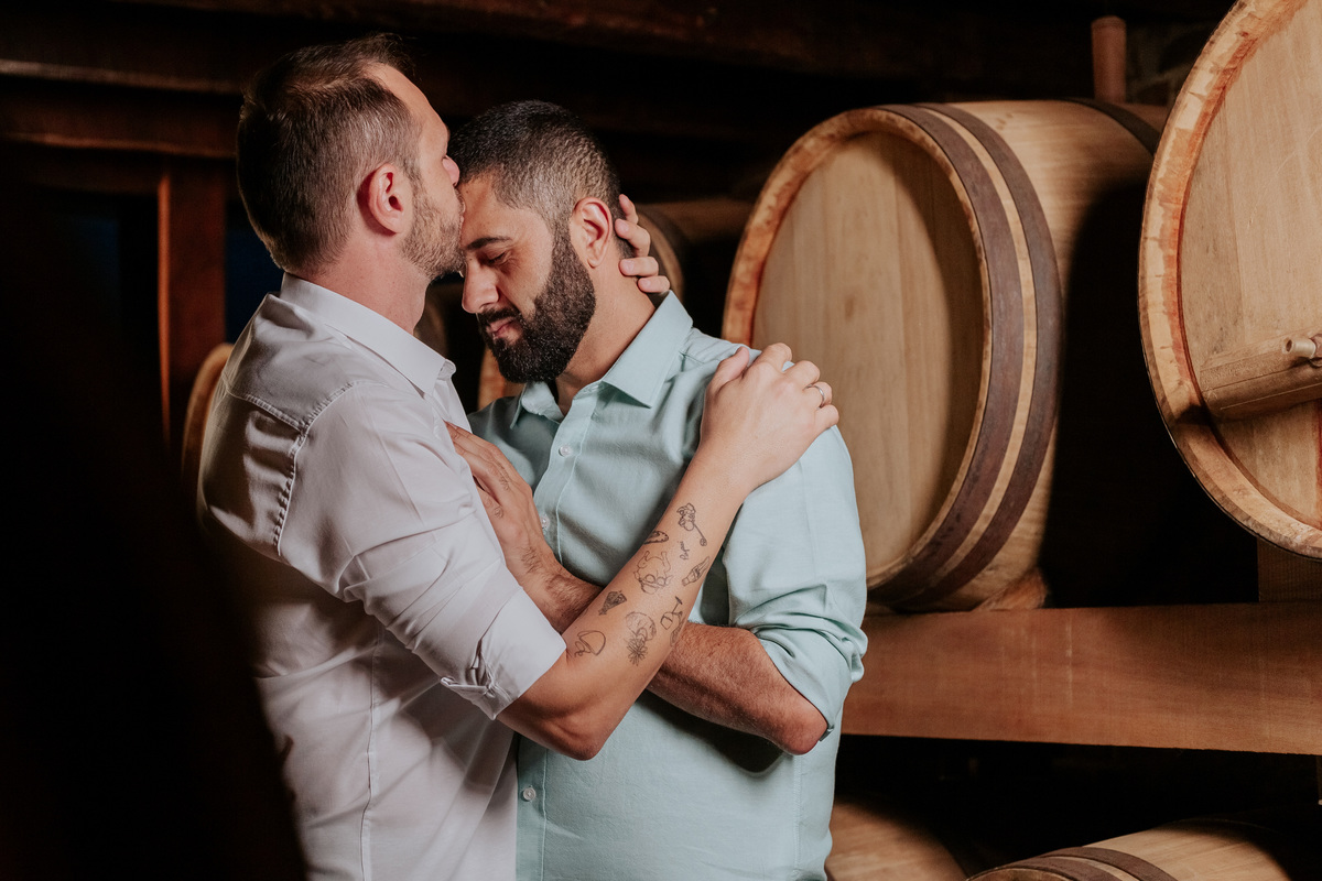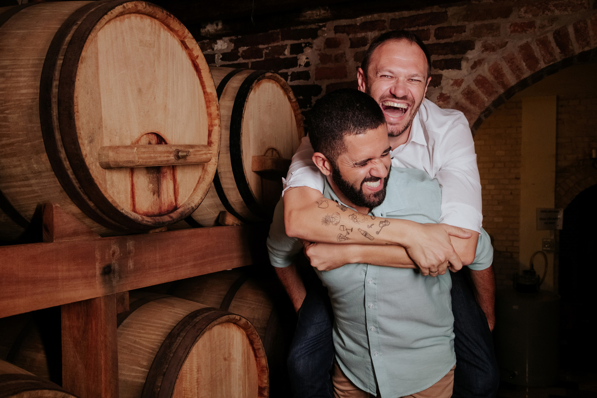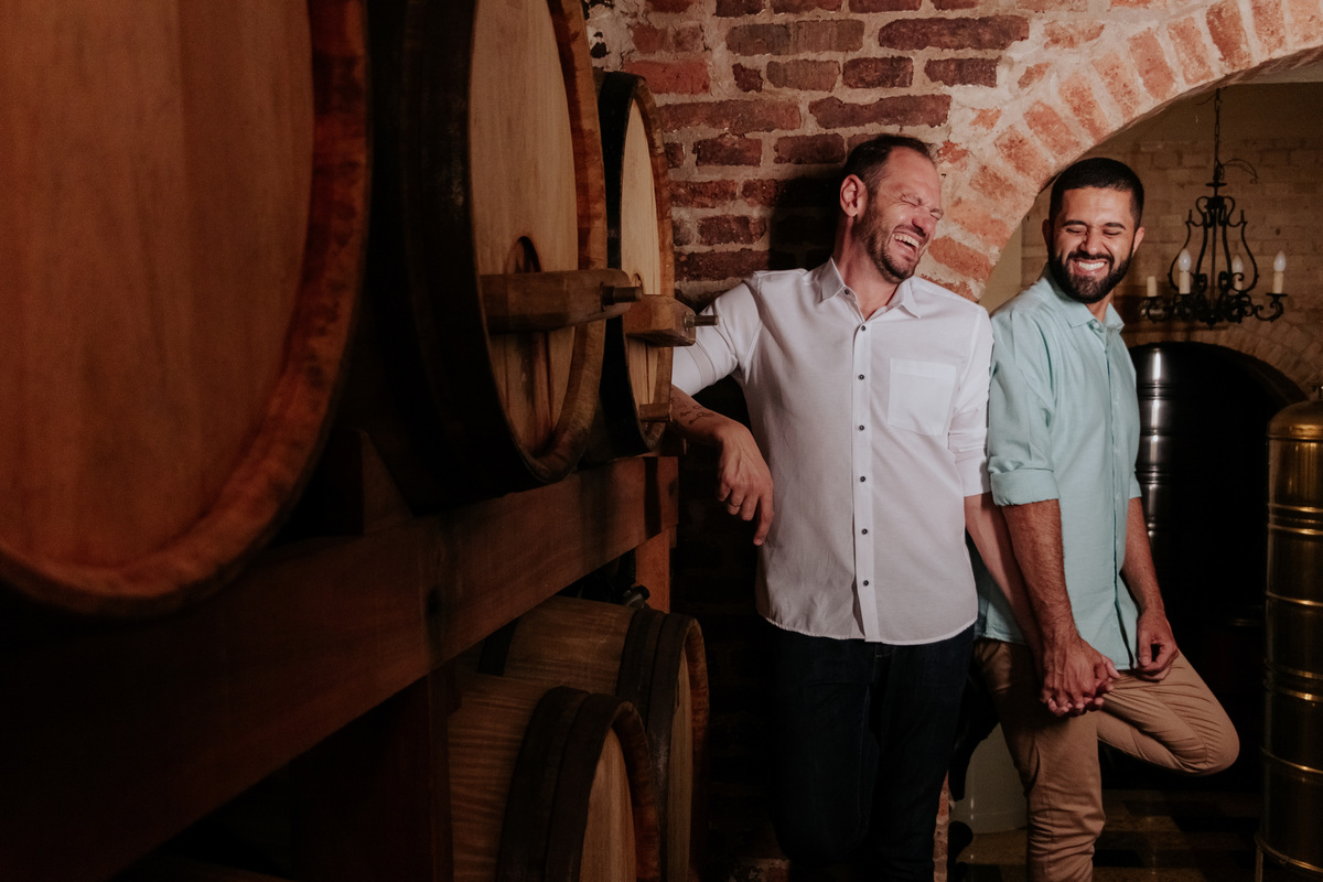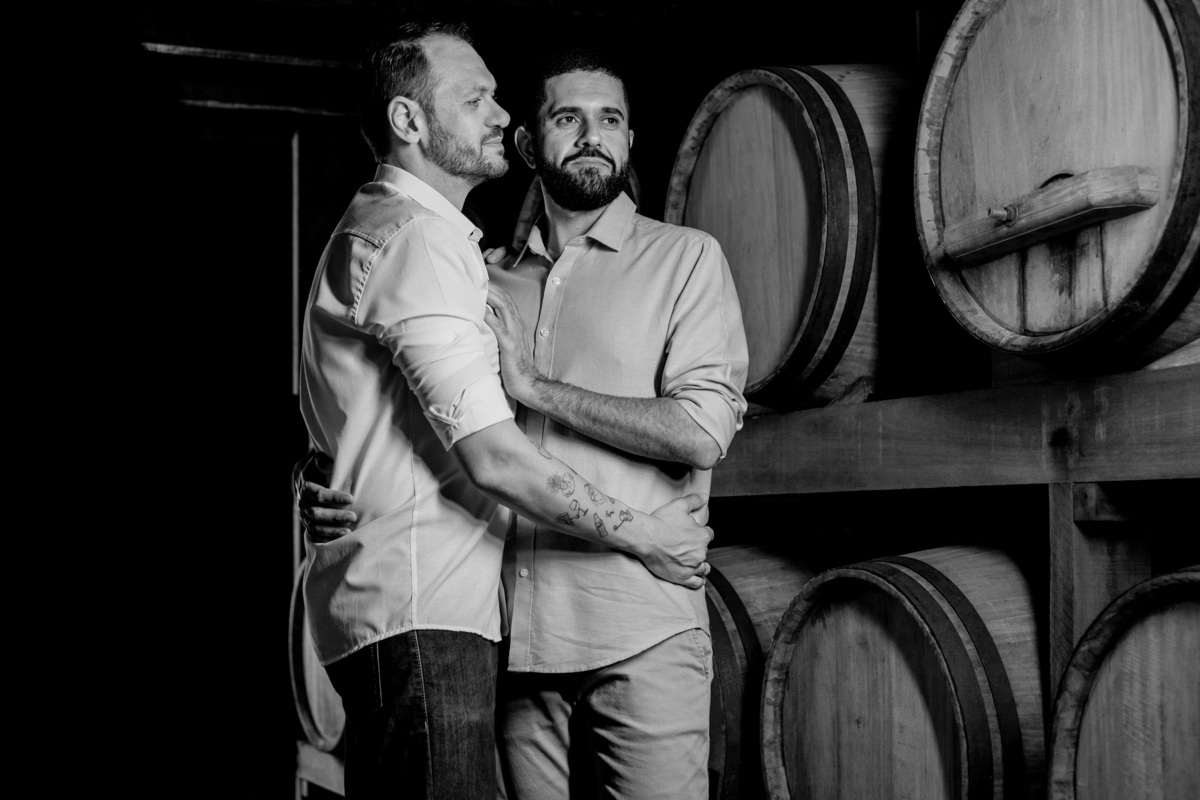 barril enorme de vinho ensaio 2 meninos gays, ensaio trisal ensaio poliamor, pré wedding sem preconceito, fotografia sem protocolos sem rótulos, ensaio natural documental e espontâneo thais augusto fotografia