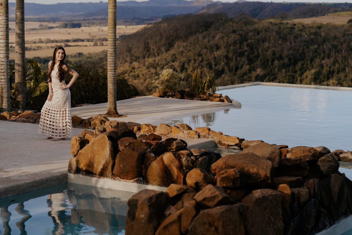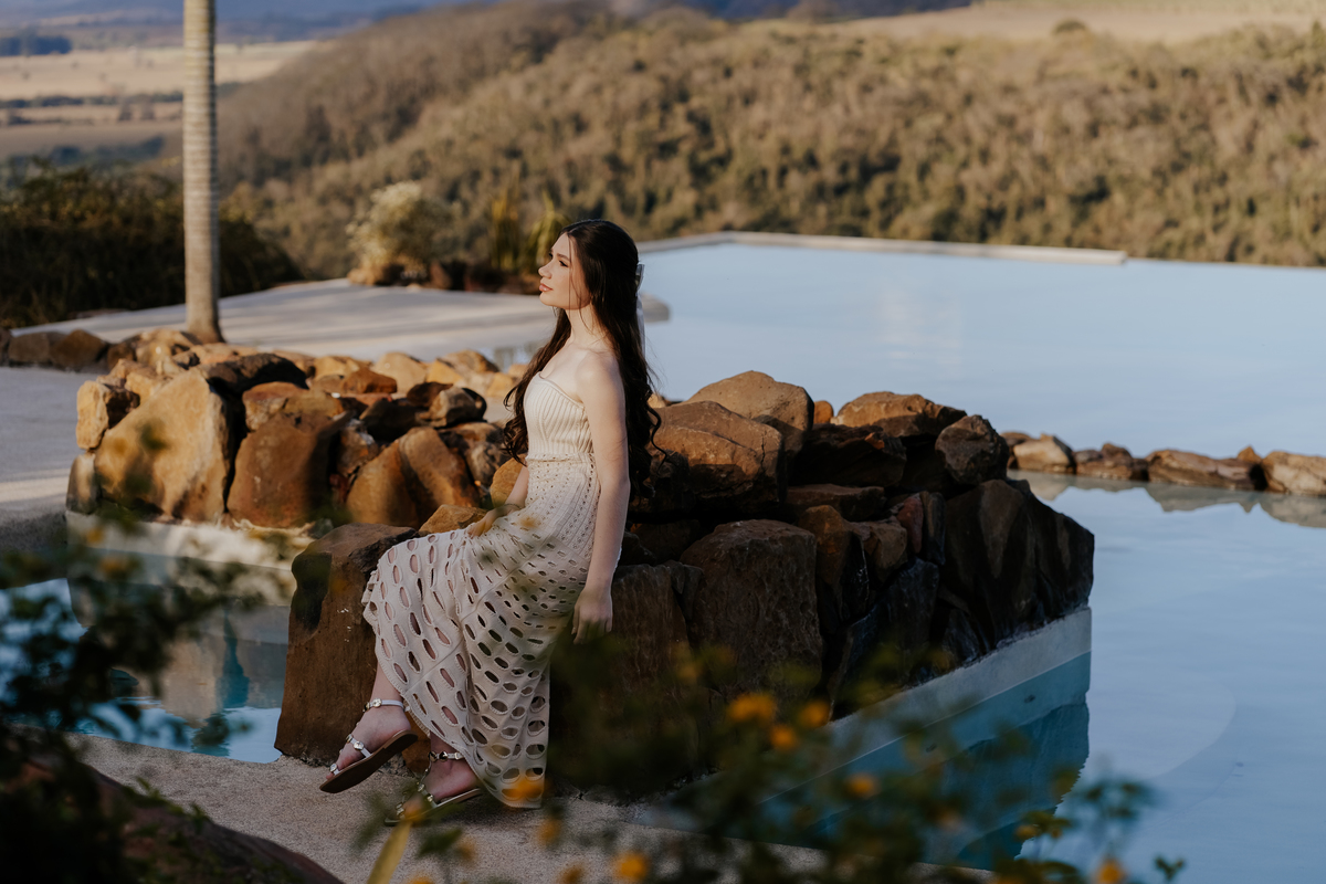 O ensaio de 15 anos da Alice não foi sobre vestidos rodando em salão: foi sobre viver o sonho do jeito dela. Fomos para Águas de Santa Bárbara, em meio a cachoeiras, paisagens gigantes e uma piscina linda que fez qualquer cenário de estúdio parecer pequeno.