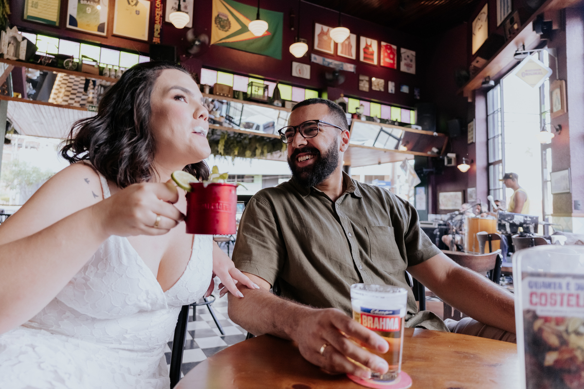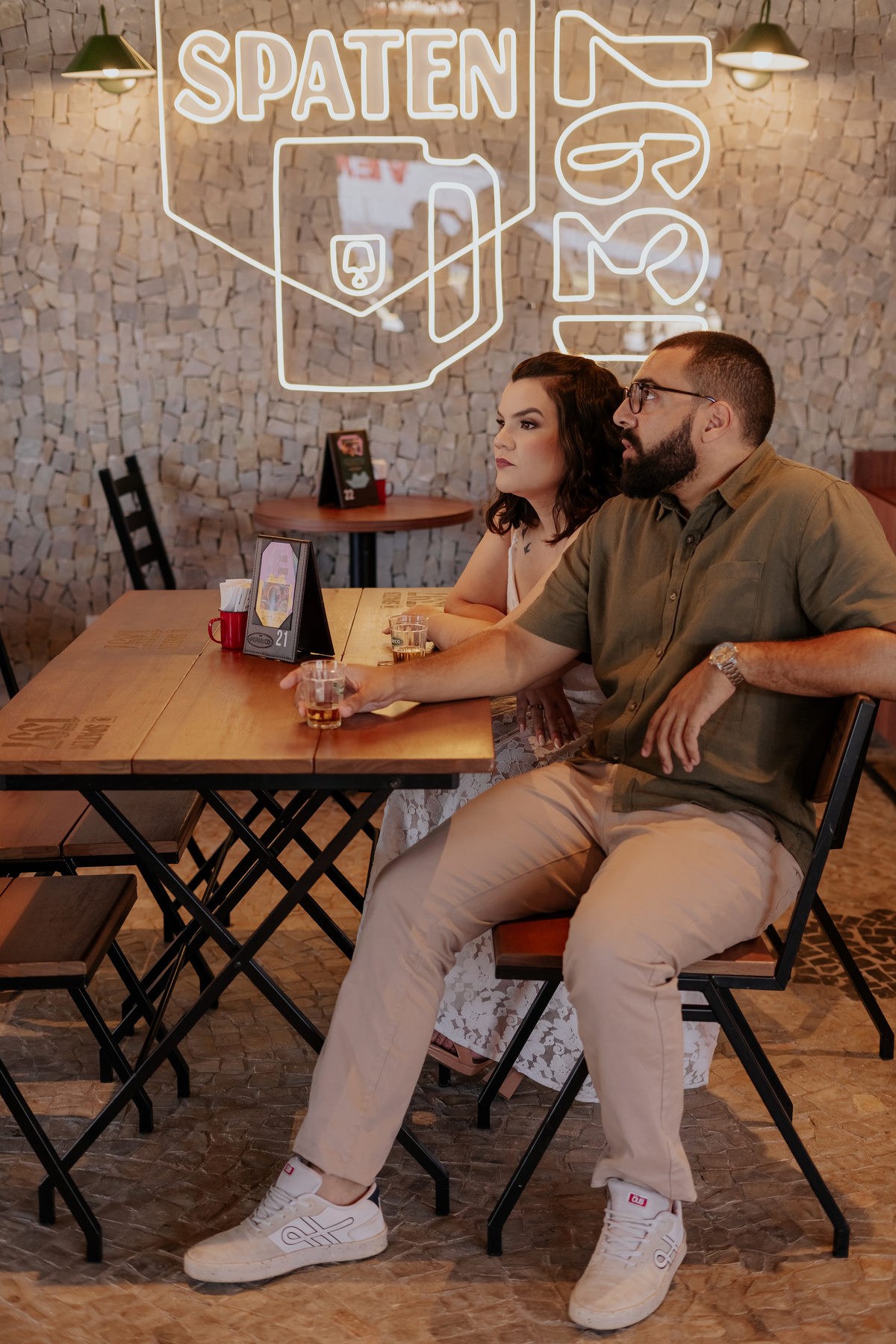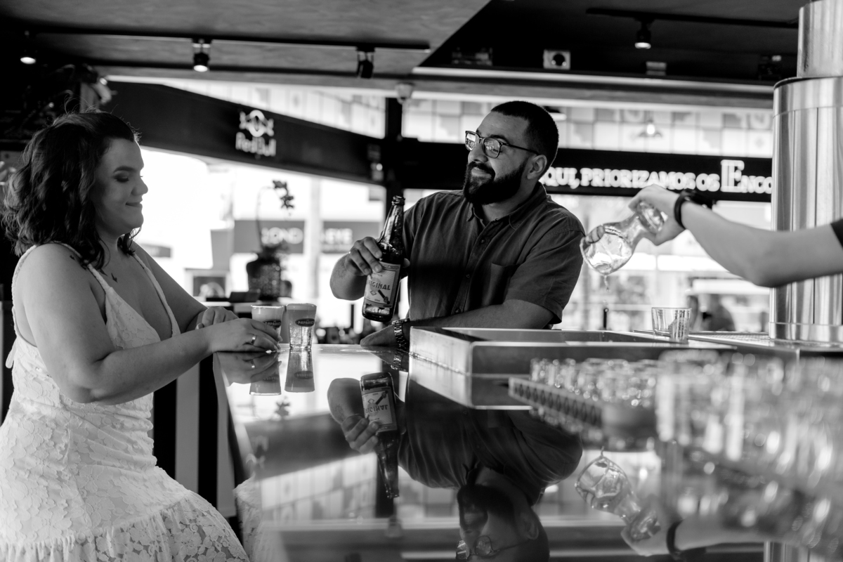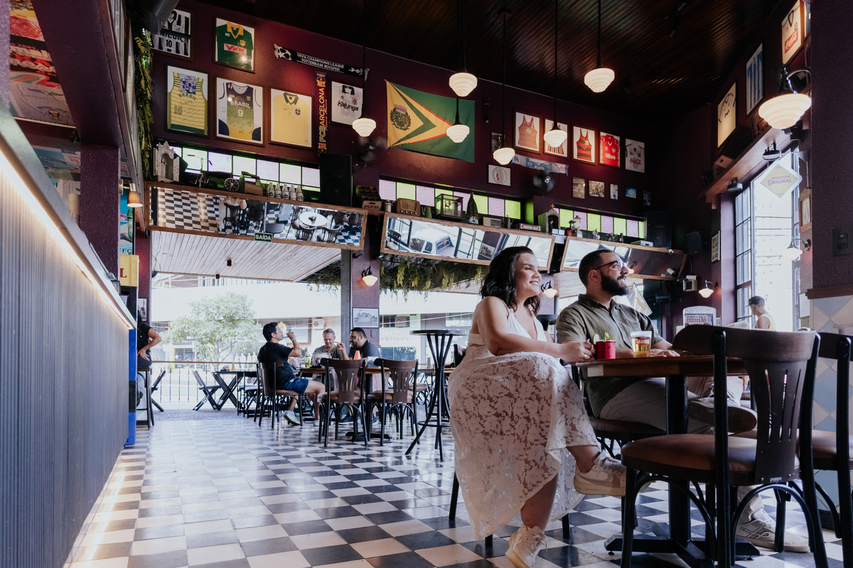 Eles amam um bom papo, gostam de curtir a vida e têm um estilo que é só deles. Foi um prazer enorme acompanhar essa energia incrível em um passeio pelos bares da cidade, lugares que fazem parte da essência e das memórias de vocês. Cada clique capturou o amor, a leveza e as risadas de quem vive intensamente.