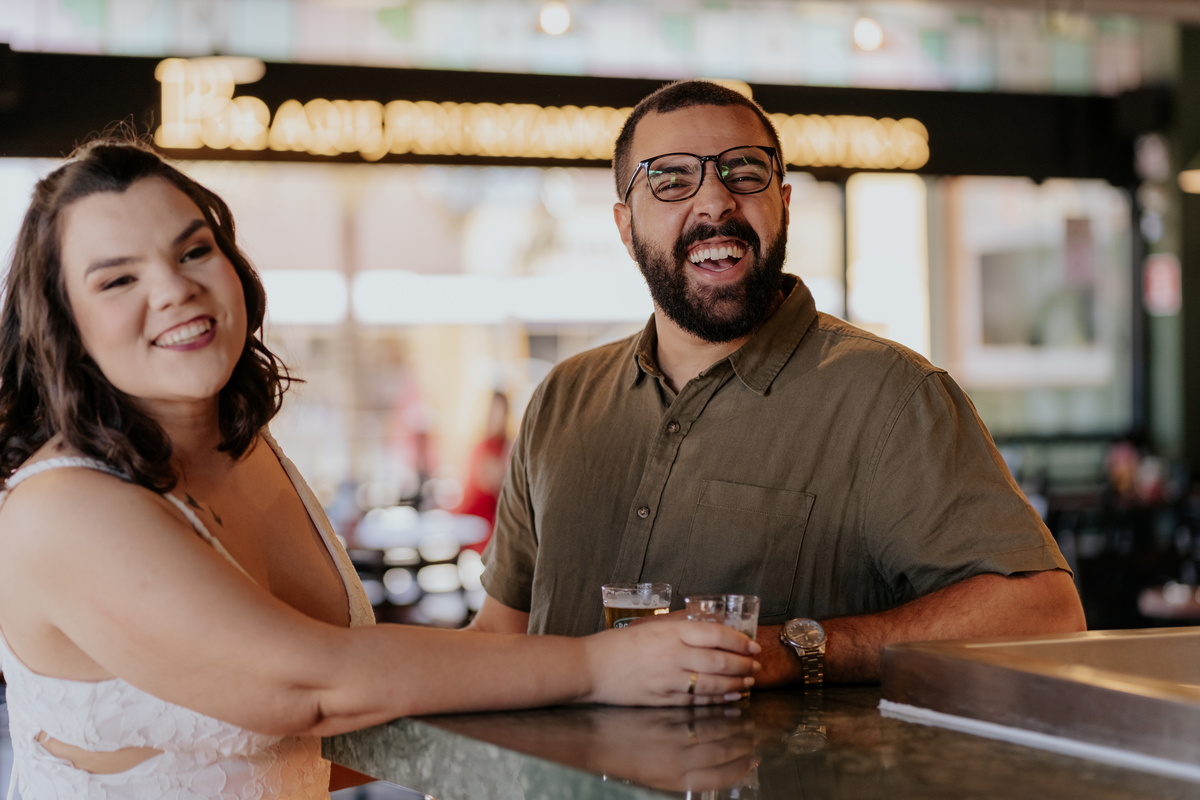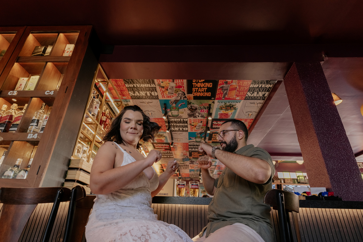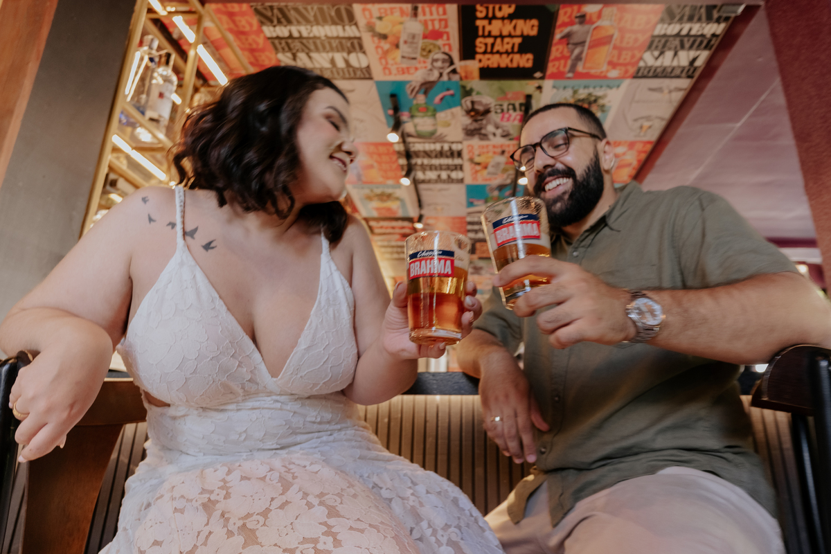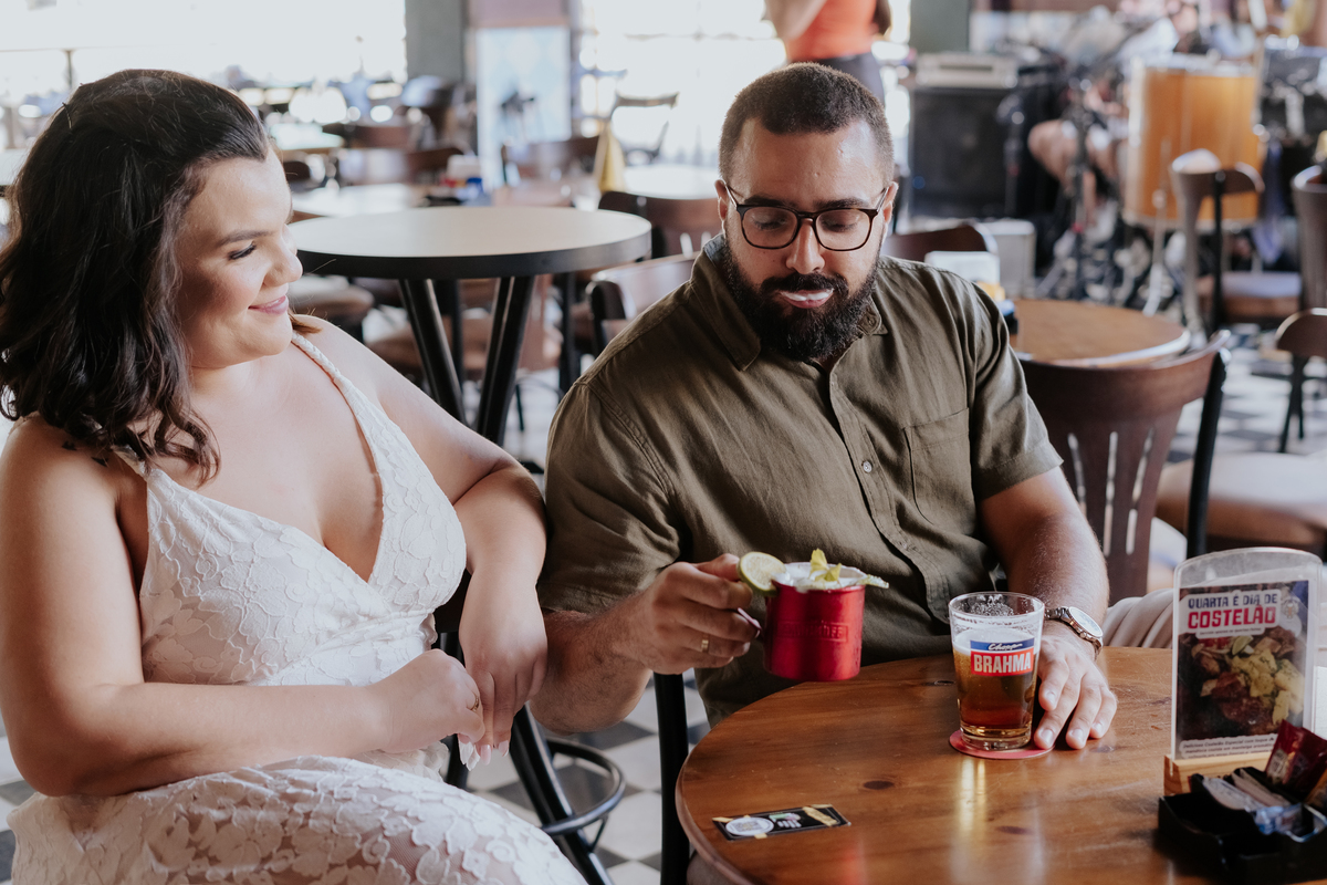 Eles amam um bom papo, gostam de curtir a vida e têm um estilo que é só deles. Foi um prazer enorme acompanhar essa energia incrível em um passeio pelos bares da cidade, lugares que fazem parte da essência e das memórias de vocês. Cada clique capturou o amor, a leveza e as risadas de quem vive intensamente.