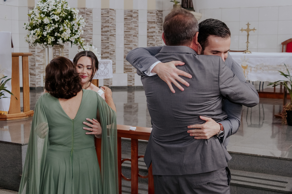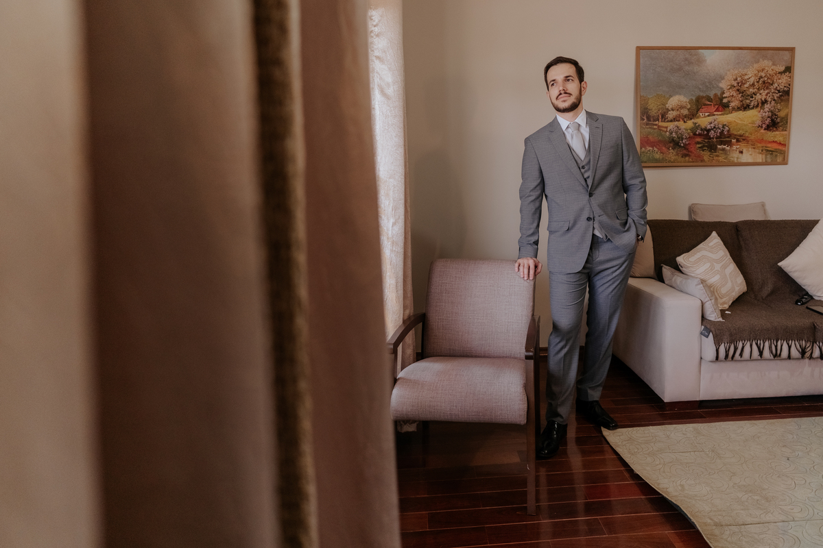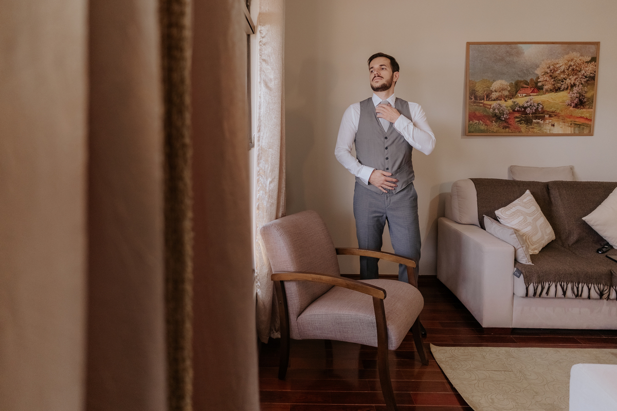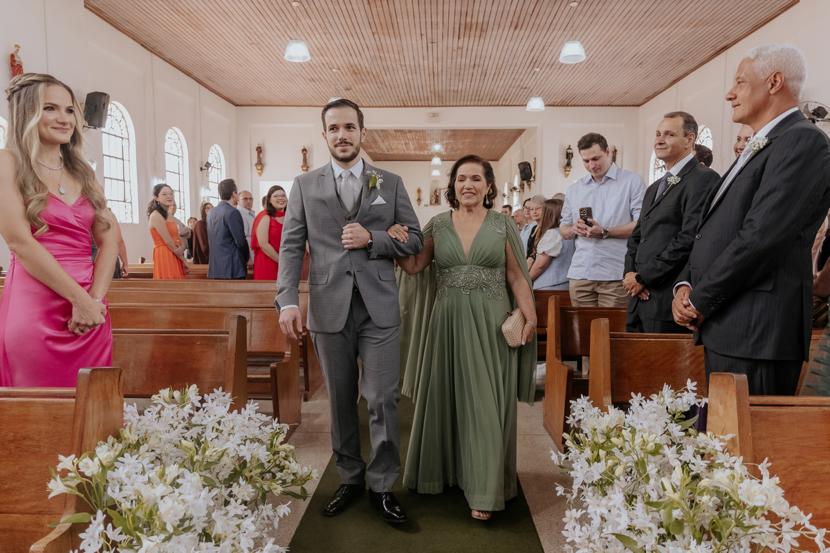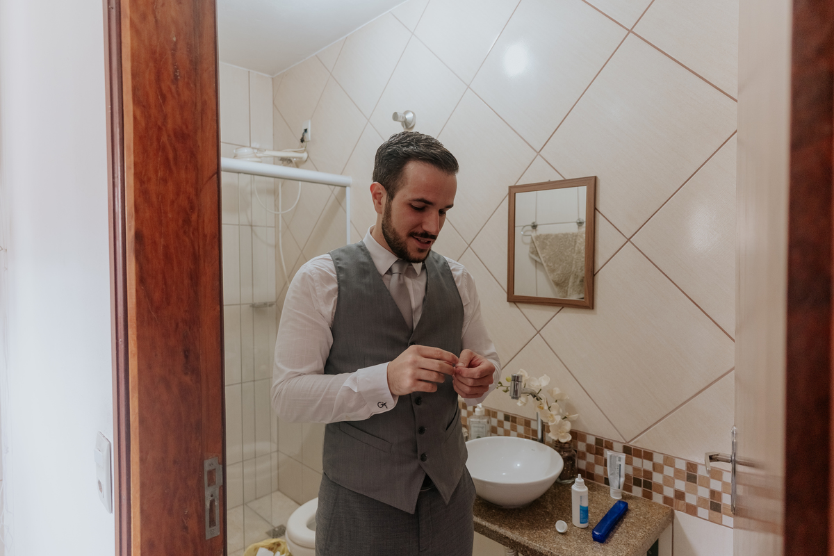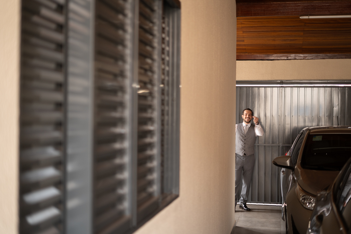 Começamos com o making of do noivo, entre risadas na barbearia e momentos de calma em casa. Já a Érica escolheu o aconchego da casa dos pais para se arrumar, num clima íntimo e cheio de amor familiar — daqueles que a gente sente no ar.