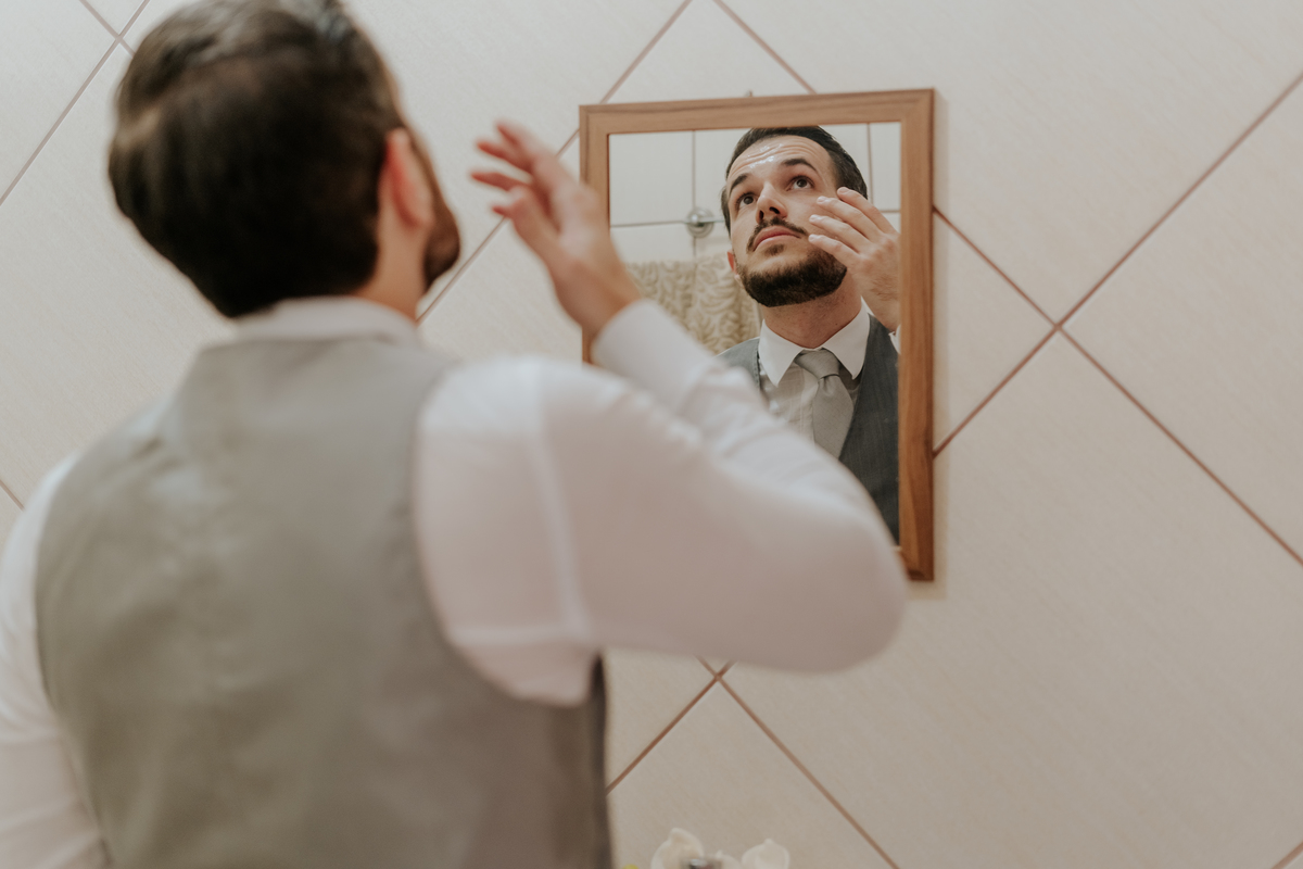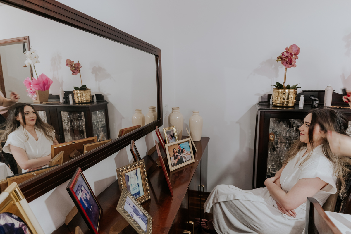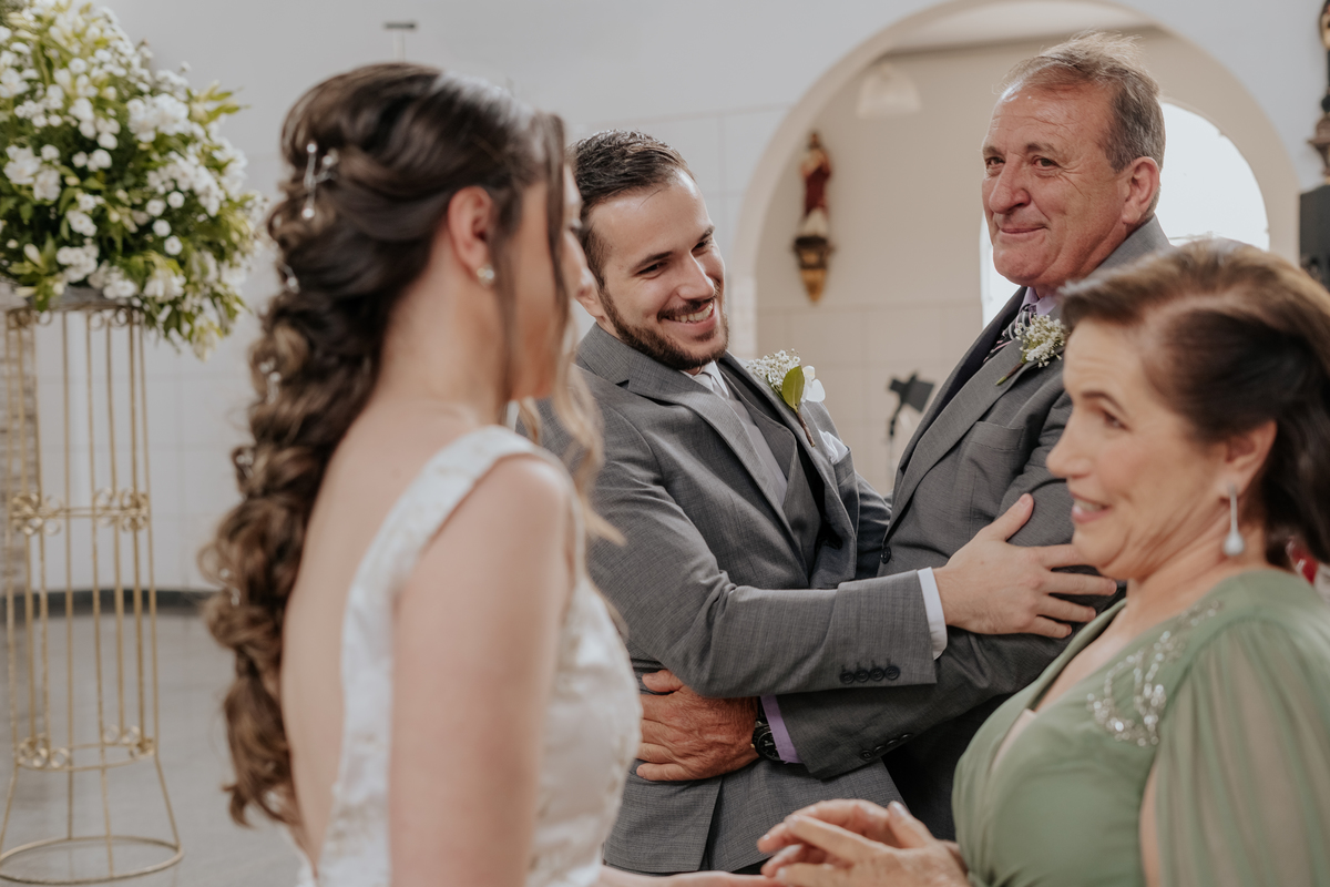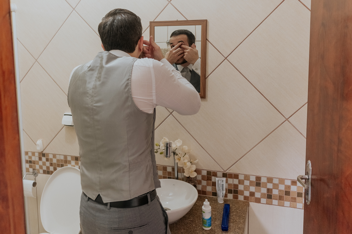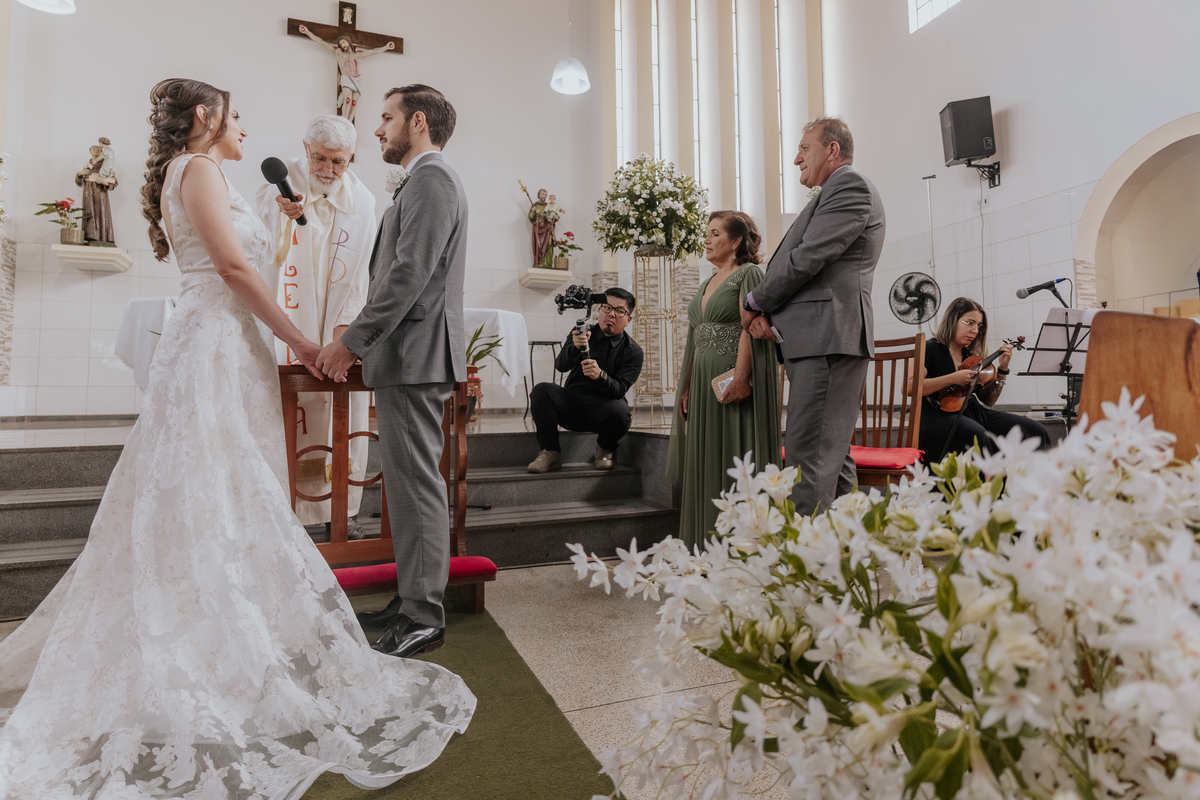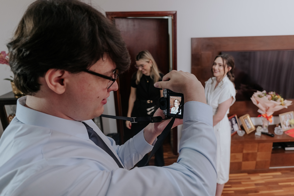 Começamos com o making of do noivo, entre risadas na barbearia e momentos de calma em casa. Já a Érica escolheu o aconchego da casa dos pais para se arrumar, num clima íntimo e cheio de amor familiar — daqueles que a gente sente no ar.