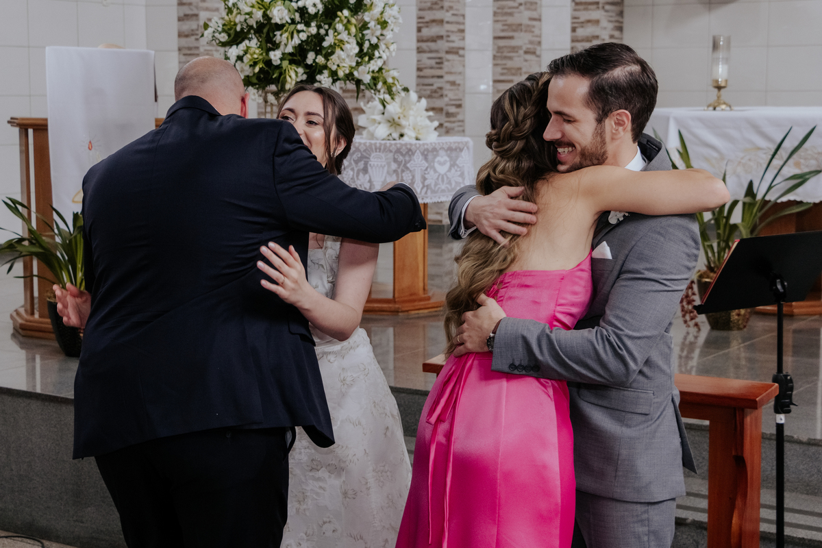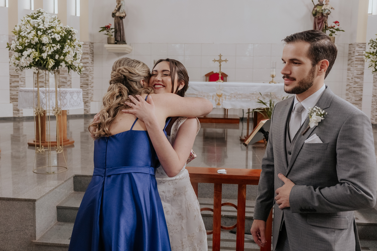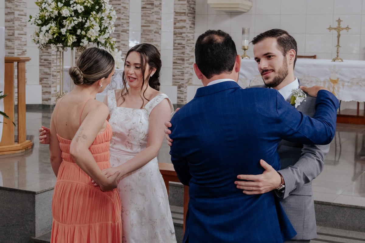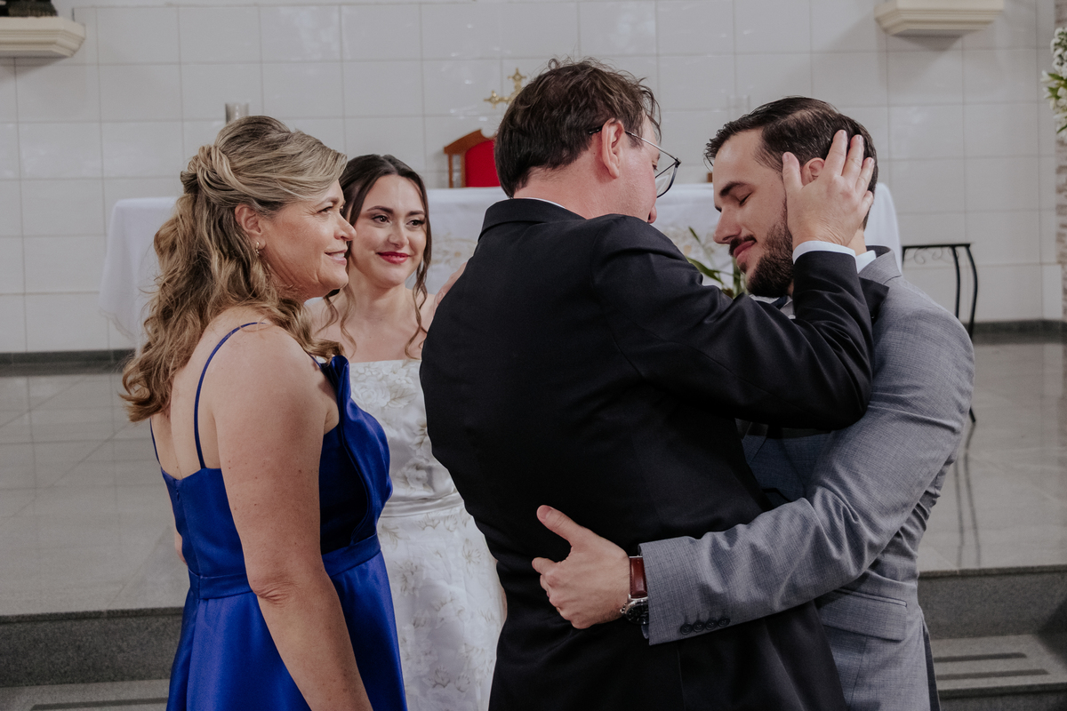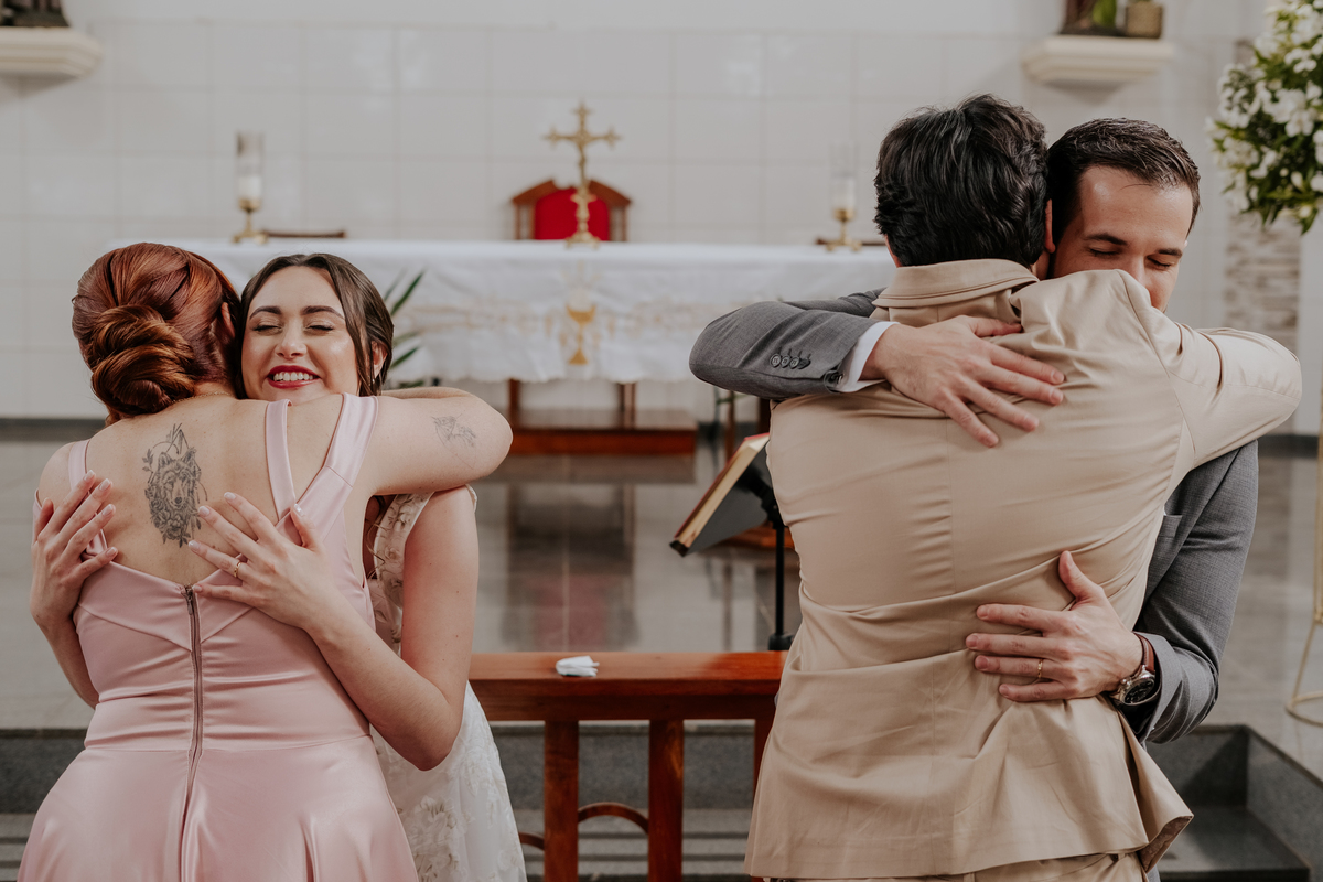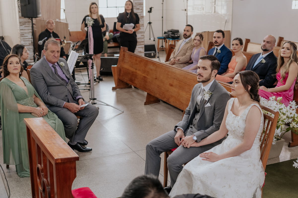 Começamos com o making of do noivo, entre risadas na barbearia e momentos de calma em casa. Já a Érica escolheu o aconchego da casa dos pais para se arrumar, num clima íntimo e cheio de amor familiar — daqueles que a gente sente no ar.