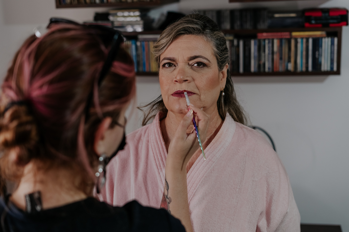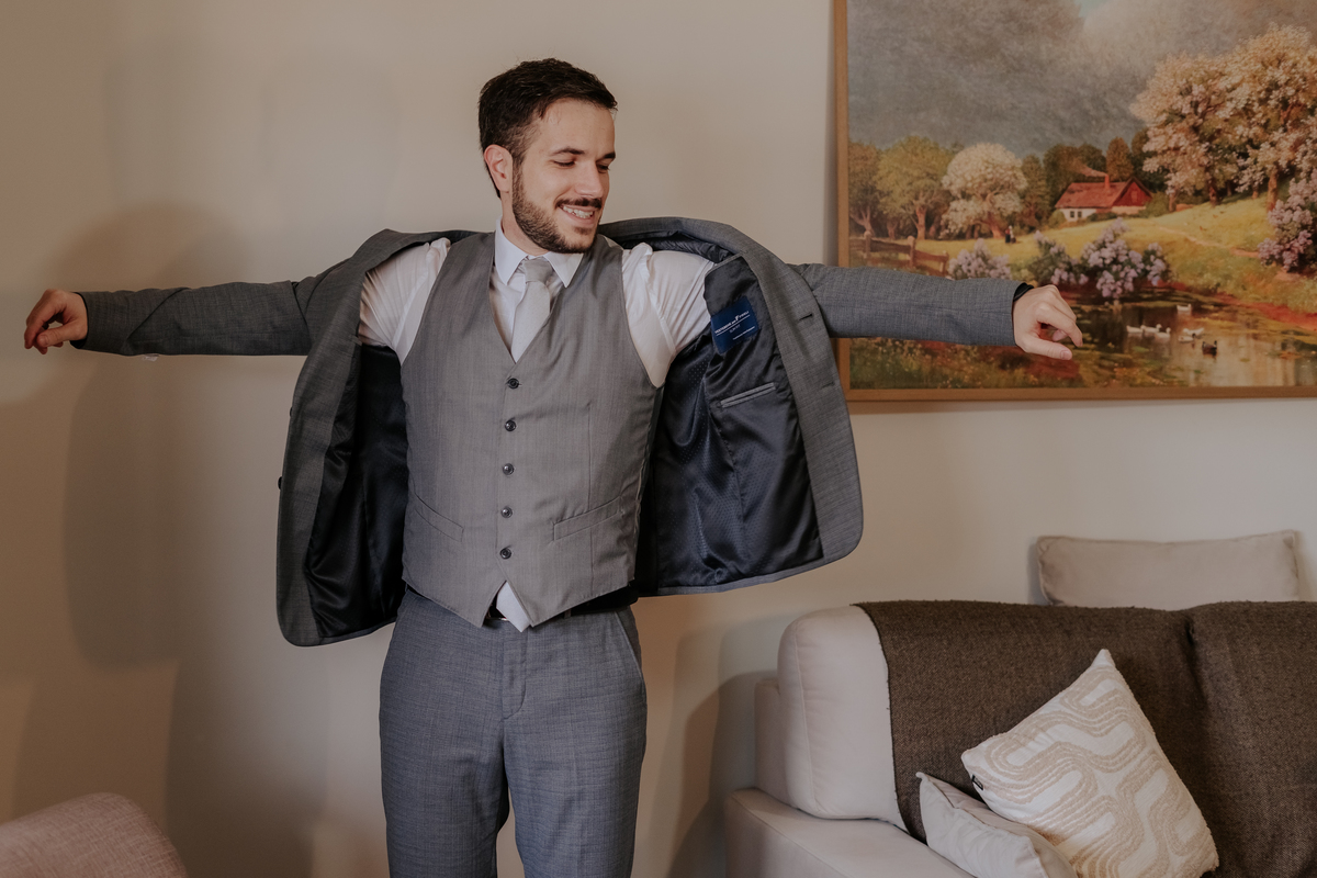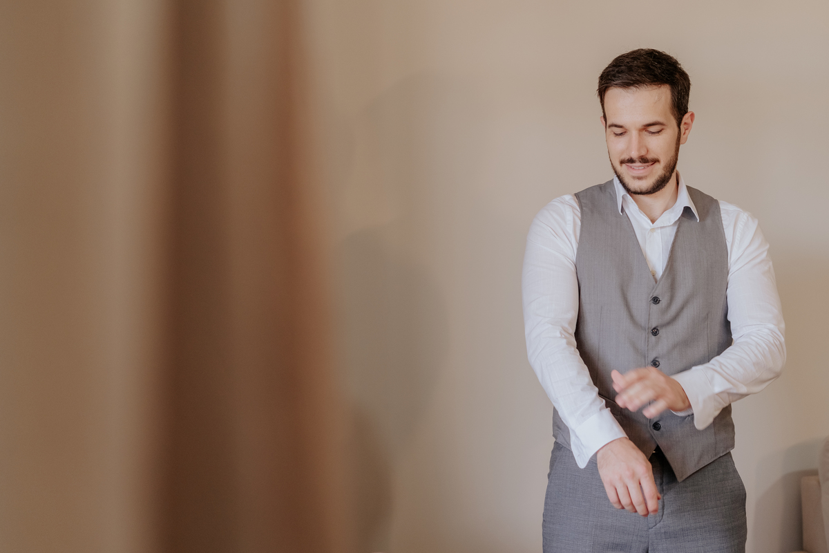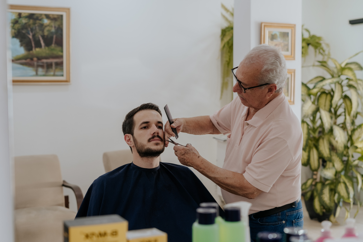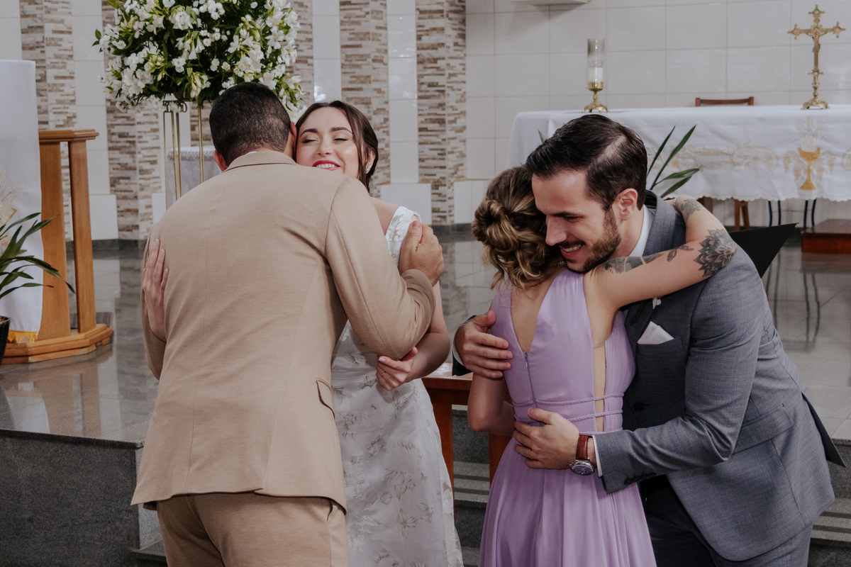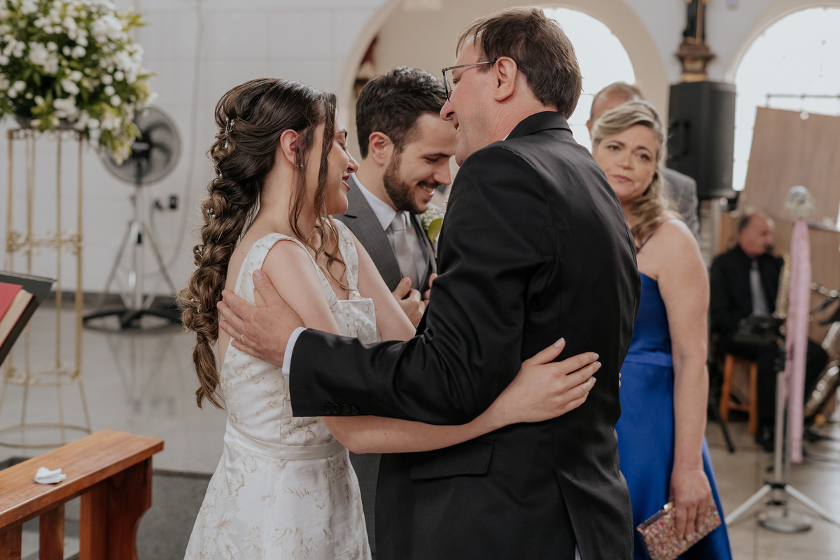 Começamos com o making of do noivo, entre risadas na barbearia e momentos de calma em casa. Já a Érica escolheu o aconchego da casa dos pais para se arrumar, num clima íntimo e cheio de amor familiar — daqueles que a gente sente no ar.