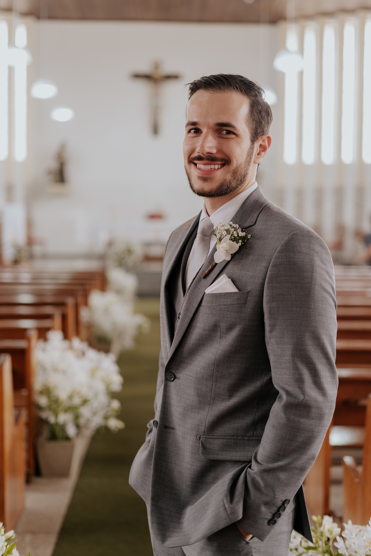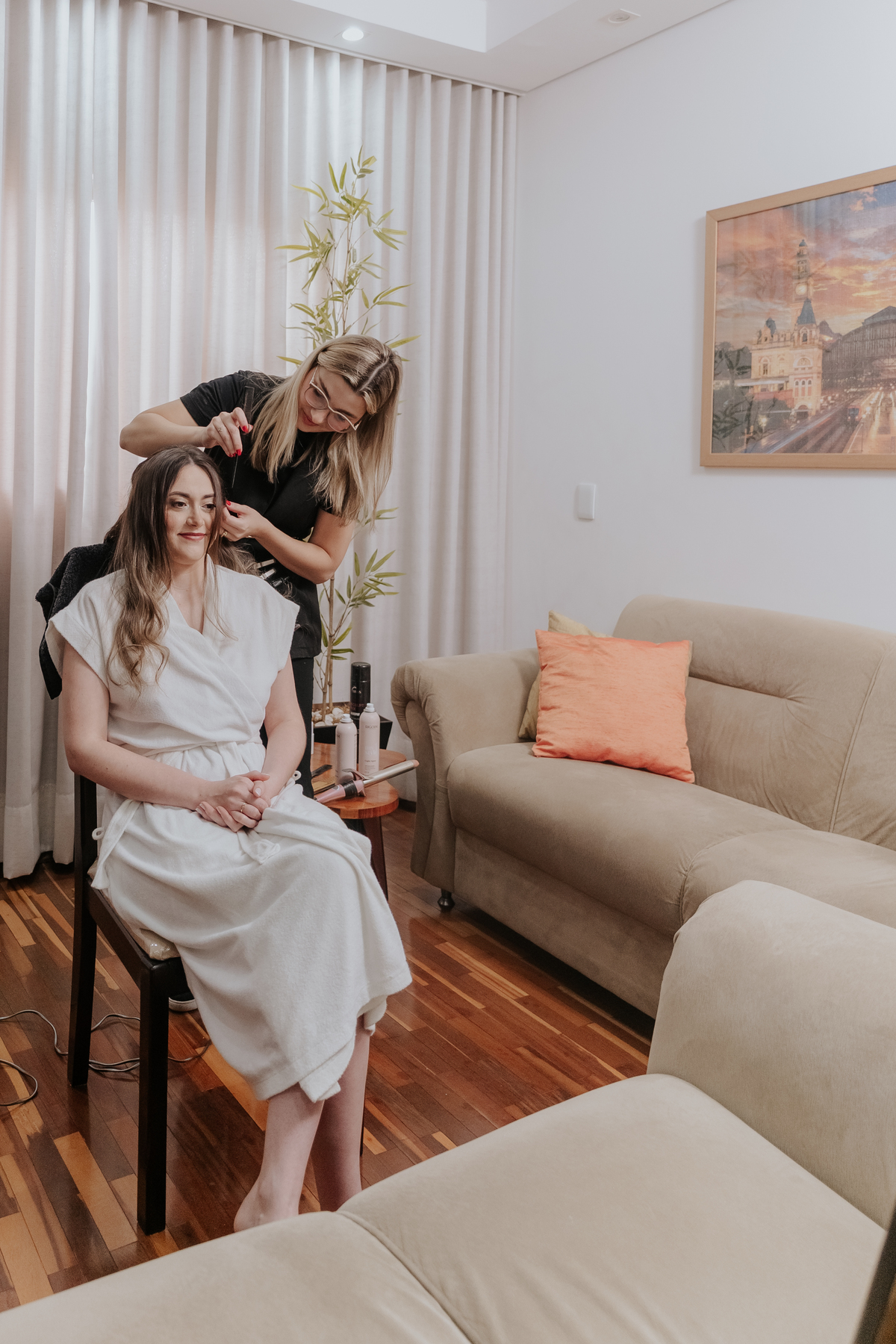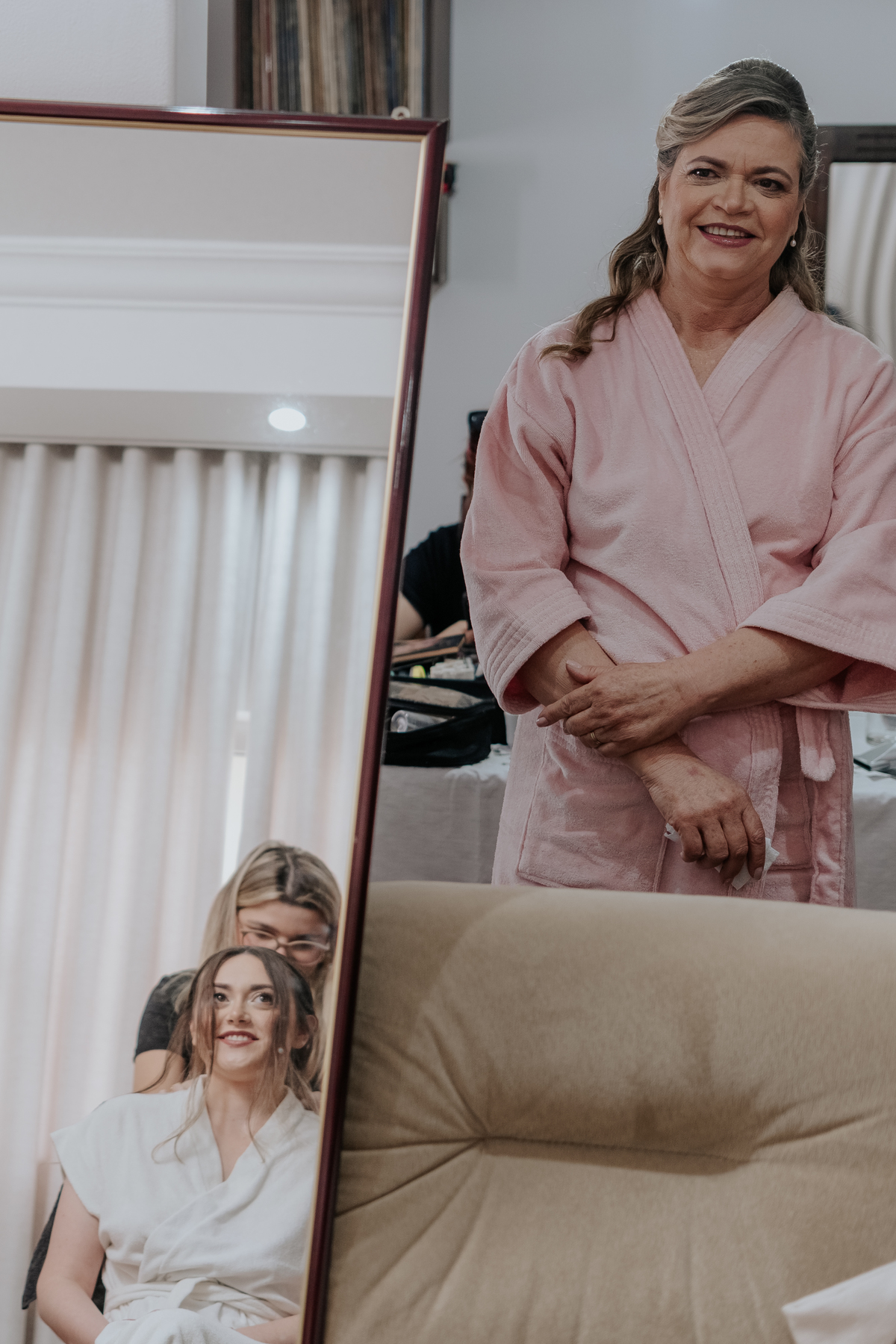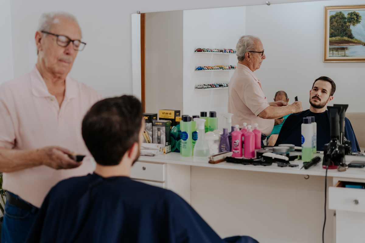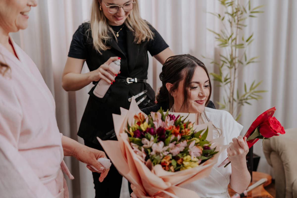 Começamos com o making of do noivo, entre risadas na barbearia e momentos de calma em casa. Já a Érica escolheu o aconchego da casa dos pais para se arrumar, num clima íntimo e cheio de amor familiar — daqueles que a gente sente no ar.