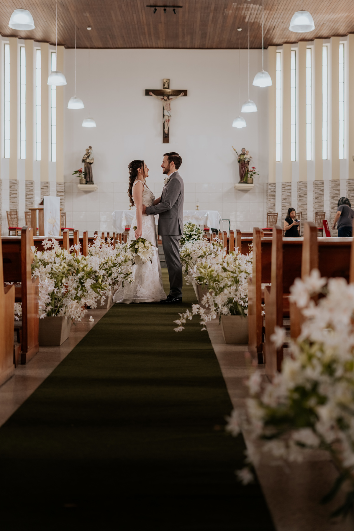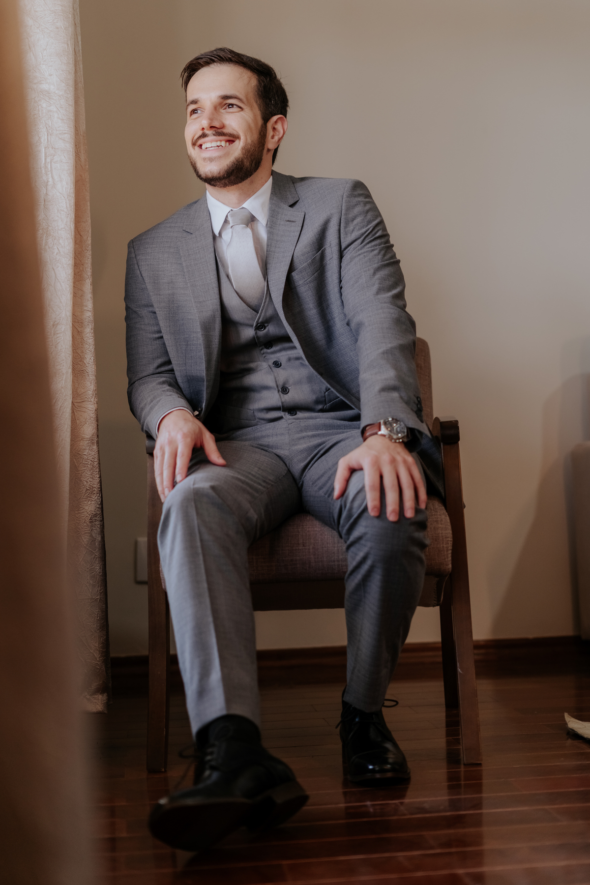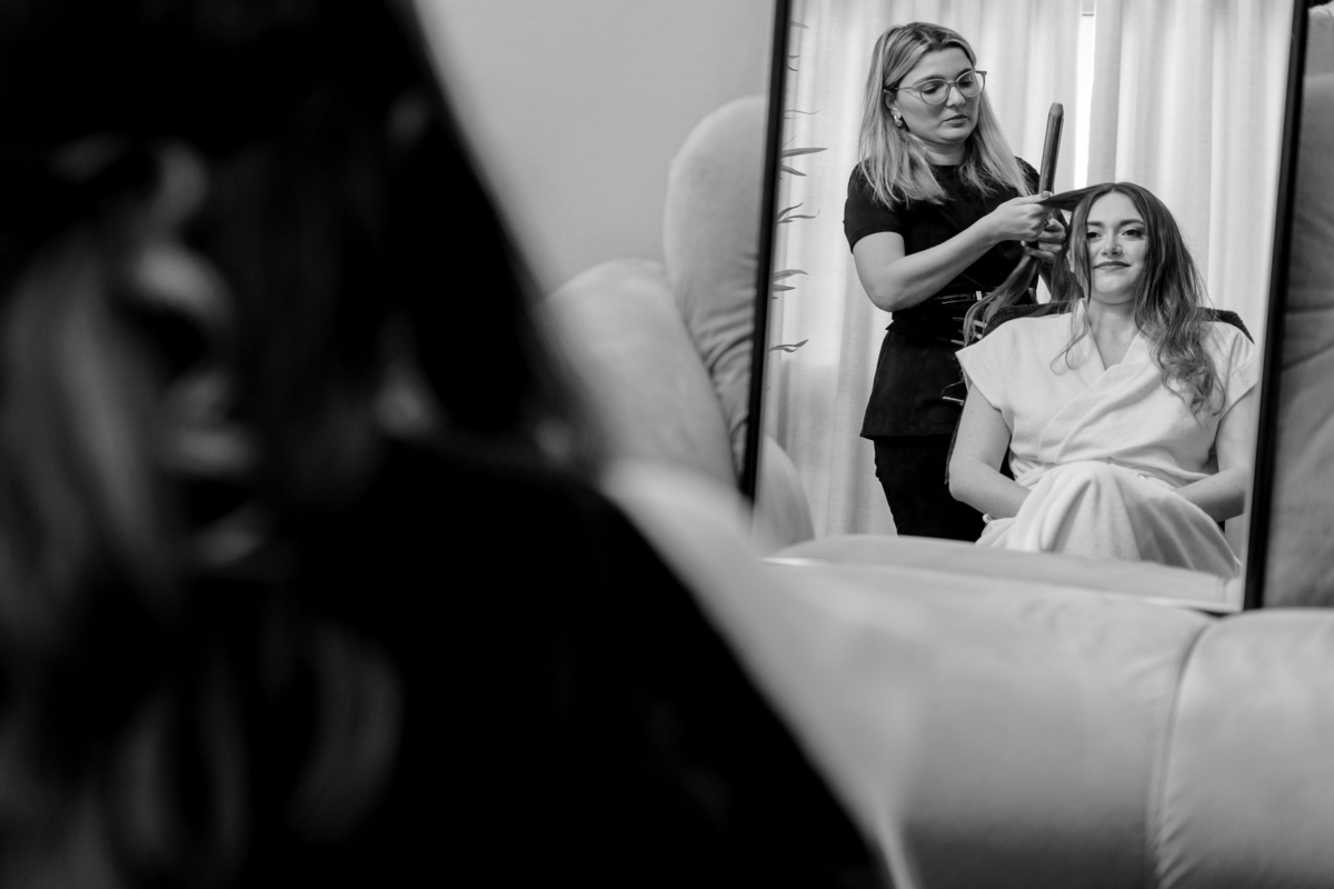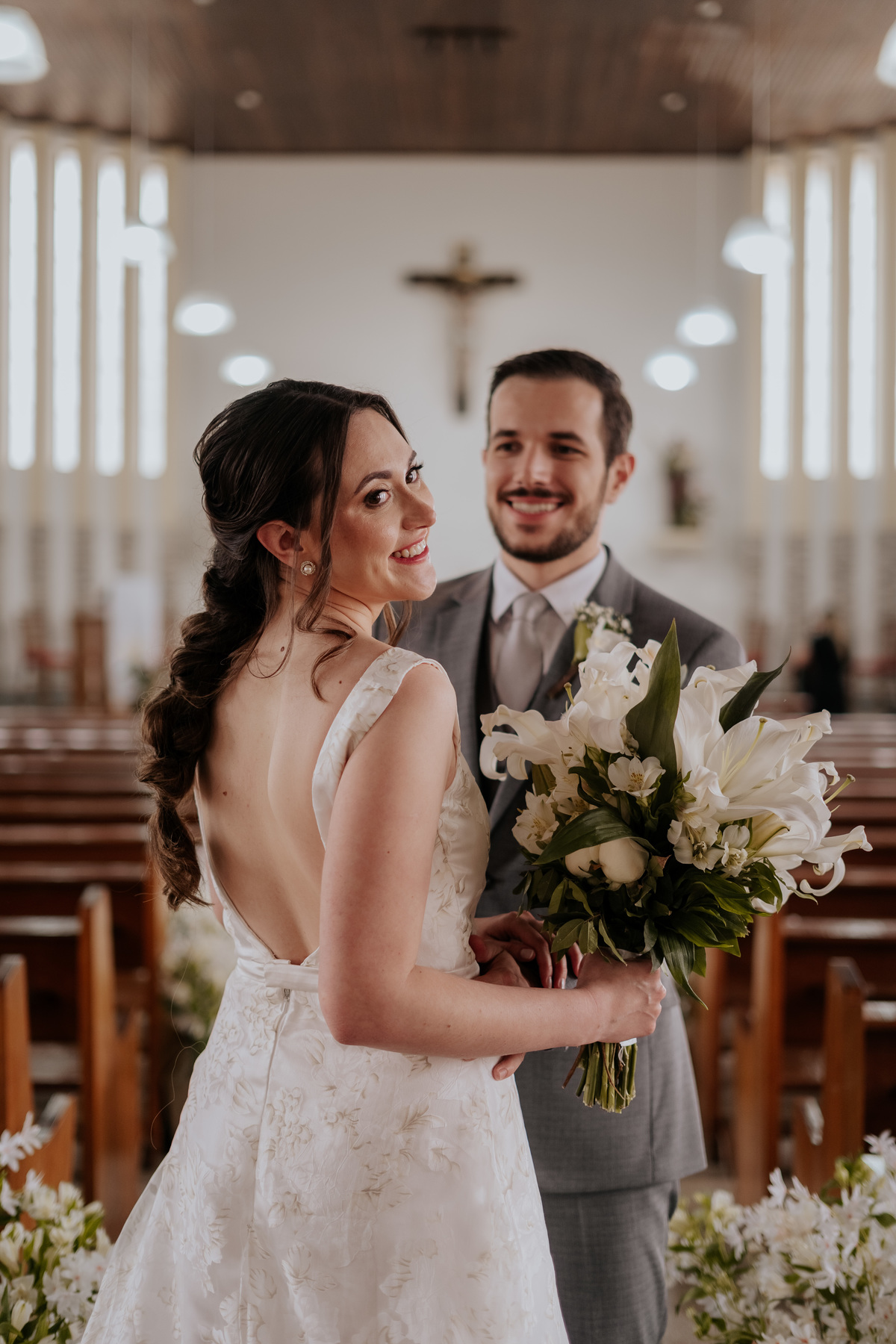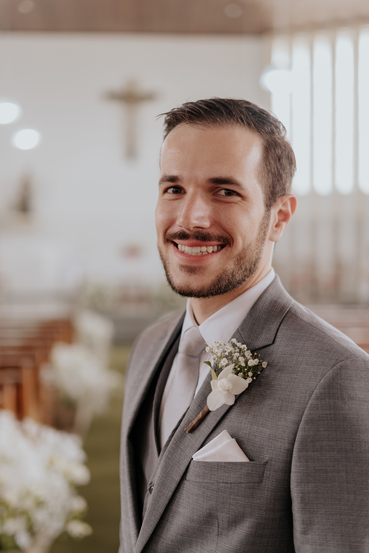 Começamos com o making of do noivo, entre risadas na barbearia e momentos de calma em casa. Já a Érica escolheu o aconchego da casa dos pais para se arrumar, num clima íntimo e cheio de amor familiar — daqueles que a gente sente no ar.