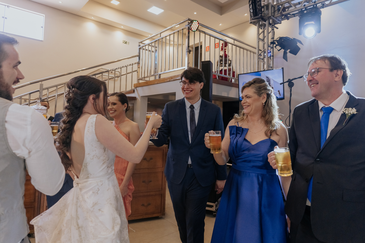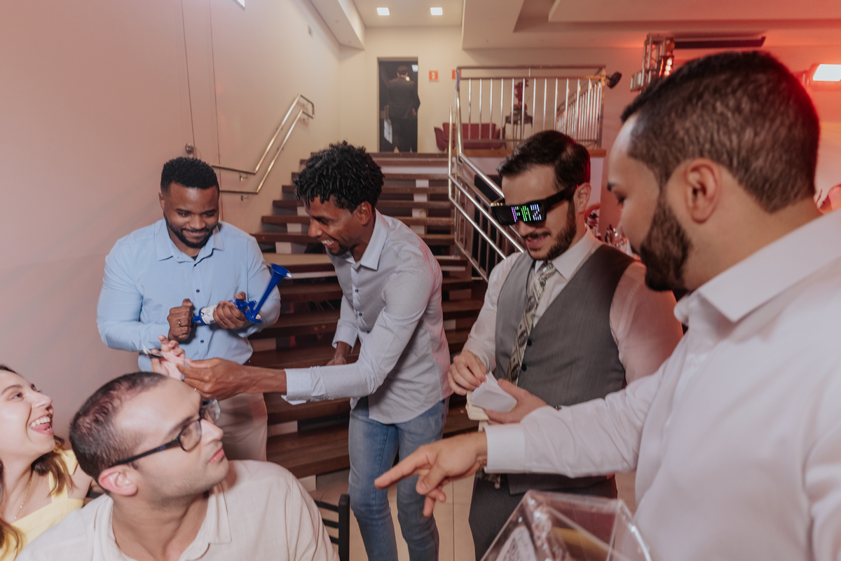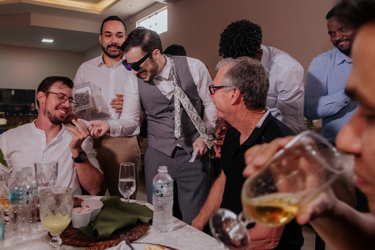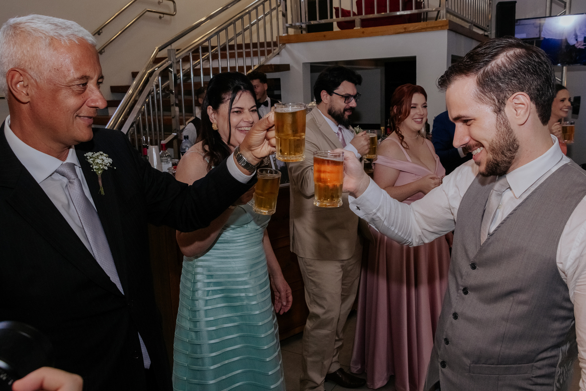 A cerimônia aconteceu na Igreja Matriz de Agudos, com cada olhar carregado de emoção. Depois, foi hora de celebrar: festa animada, boas companhias, drinks e uma energia contagiante do começo ao fim.