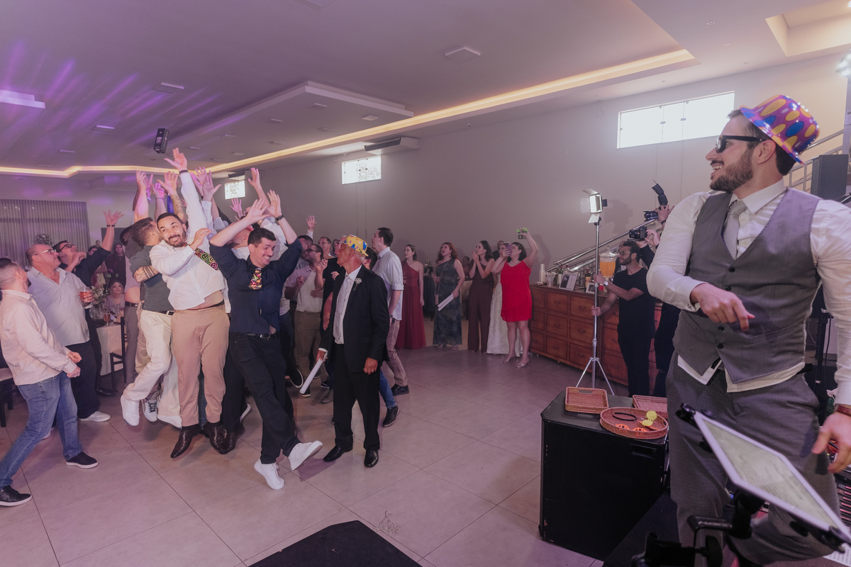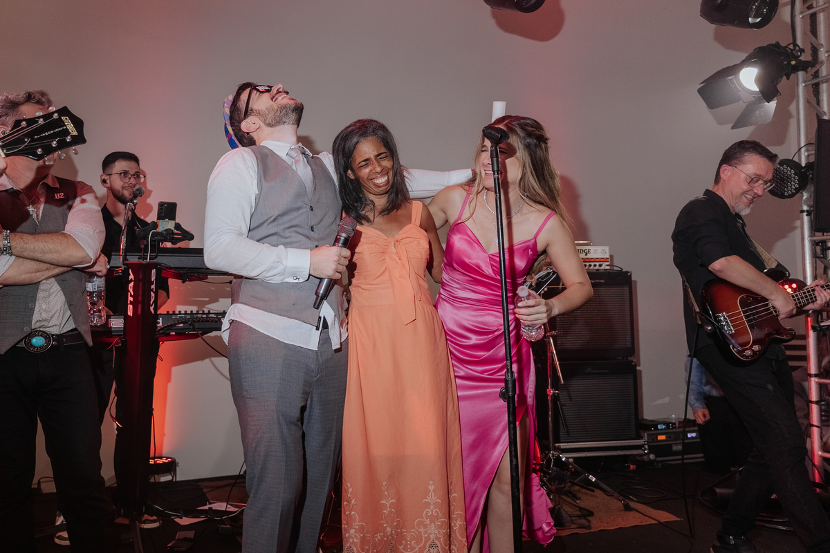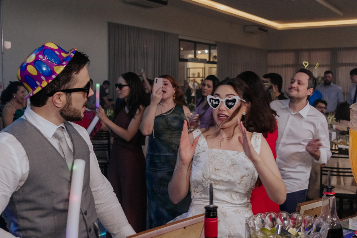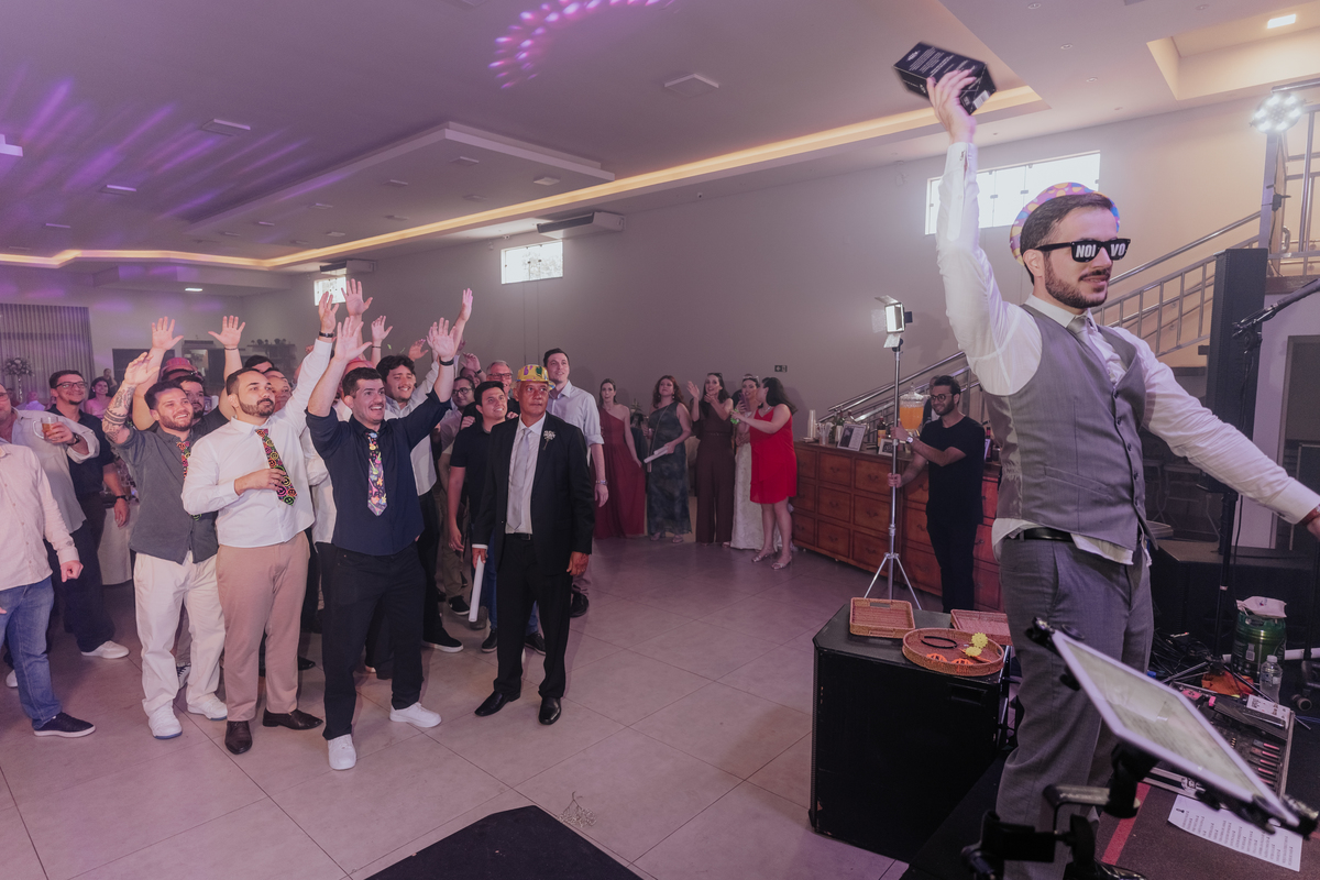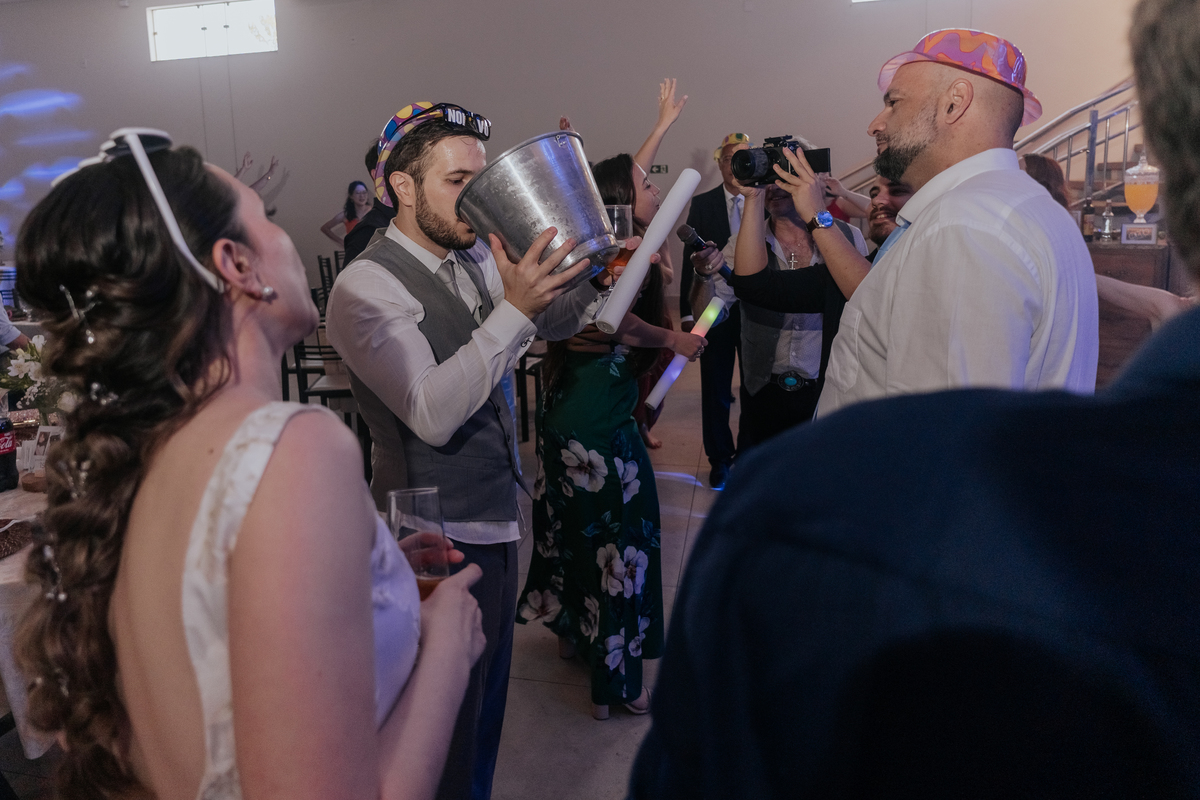 A cerimônia aconteceu na Igreja Matriz de Agudos, com cada olhar carregado de emoção. Depois, foi hora de celebrar: festa animada, boas companhias, drinks e uma energia contagiante do começo ao fim.