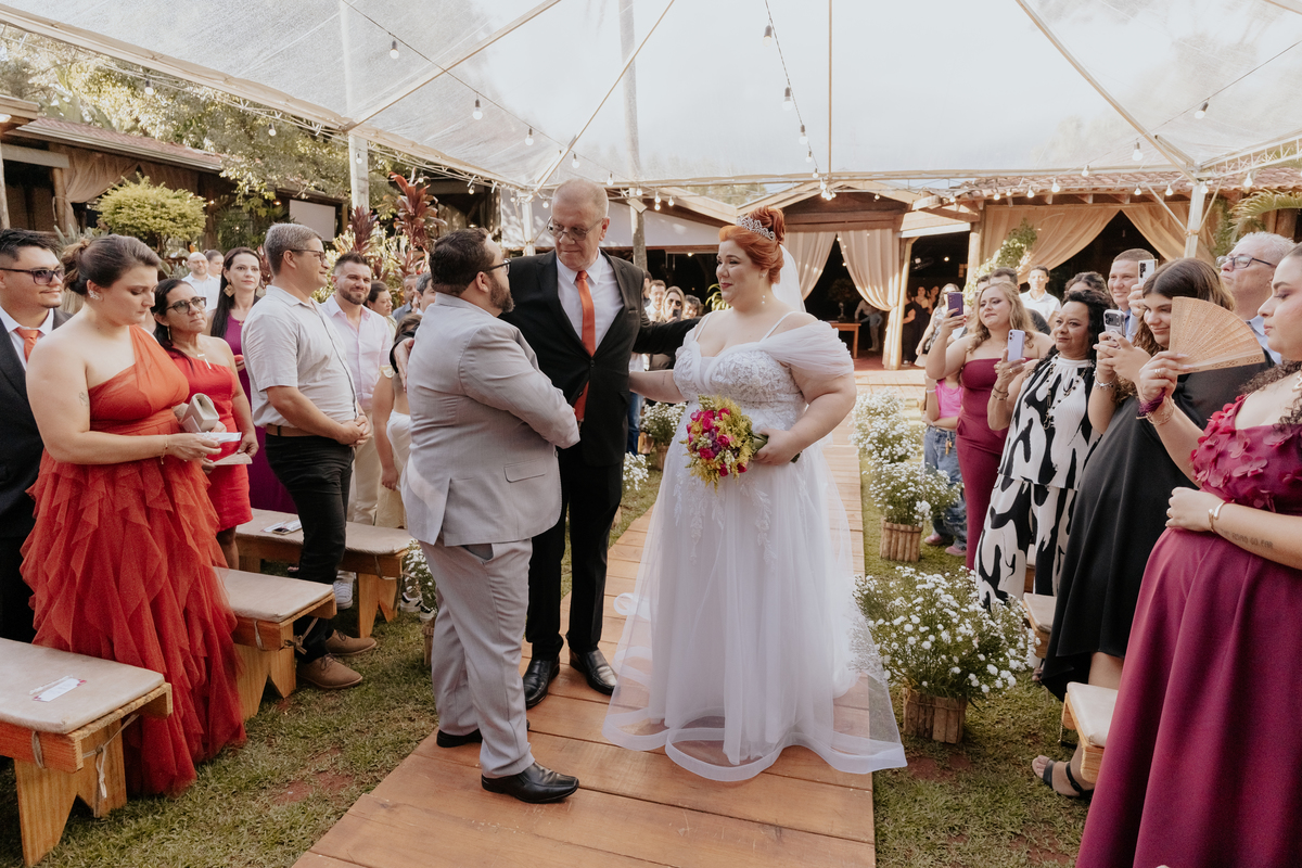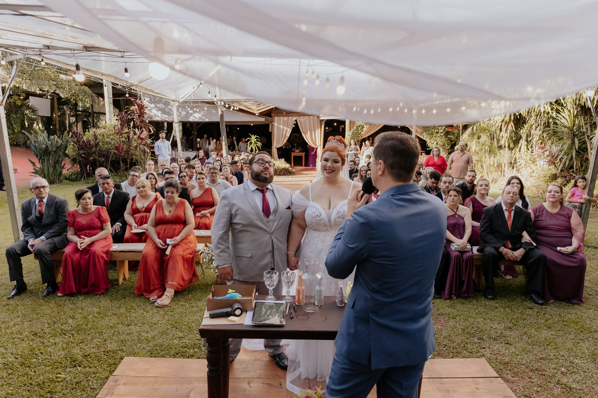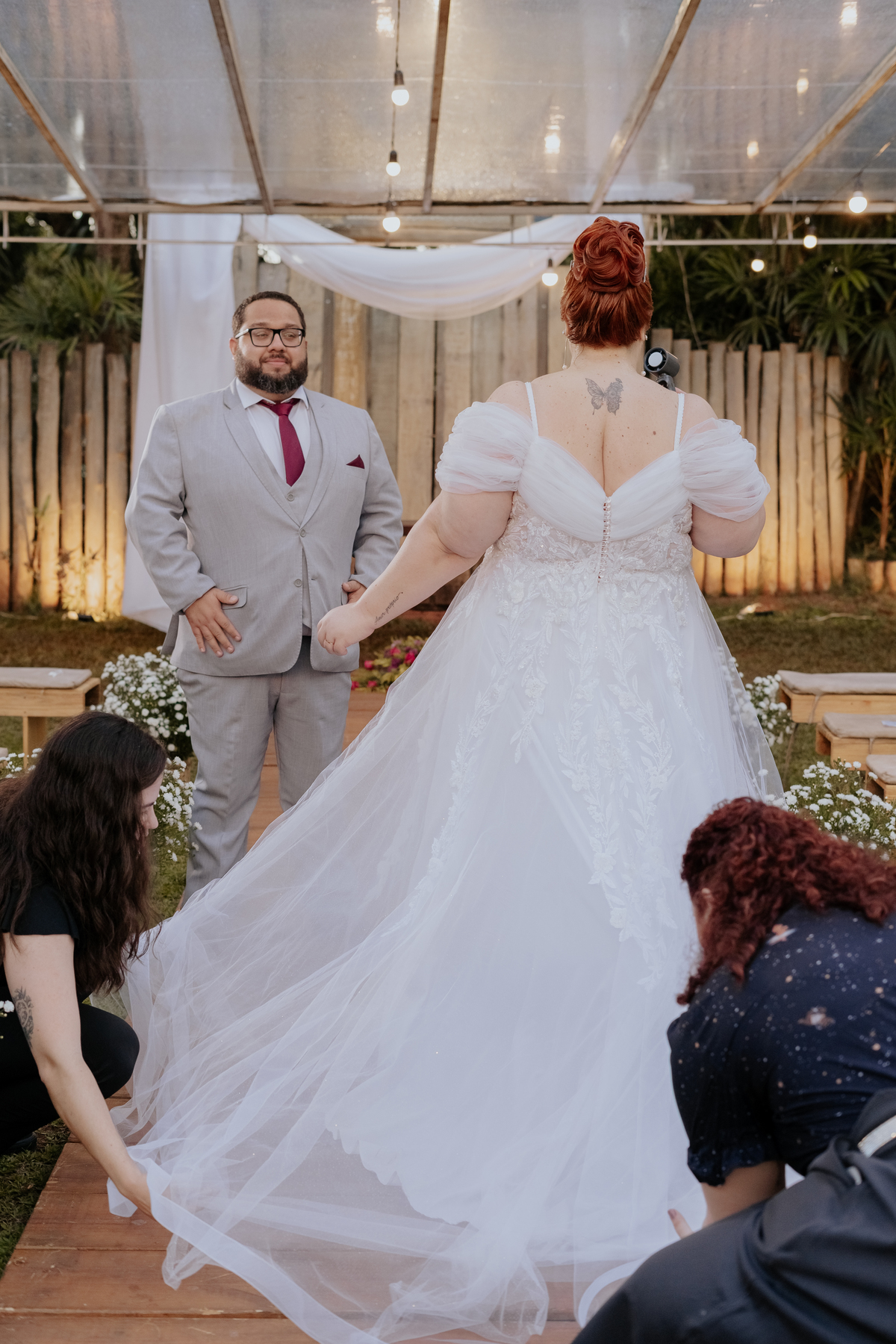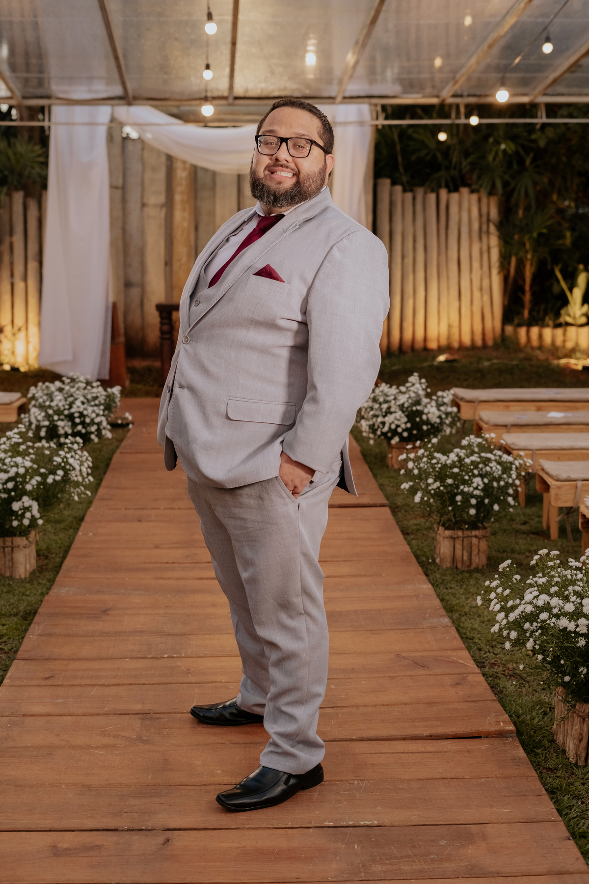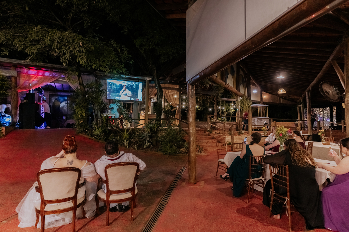 Teve making of cheio de expectativa, noiva encantada com o lugar, noivo com sorriso fácil (daqueles que entregam o coração antes mesmo da cerimônia começar ), e uma festa onde todo mundo viveu mais do que posou.