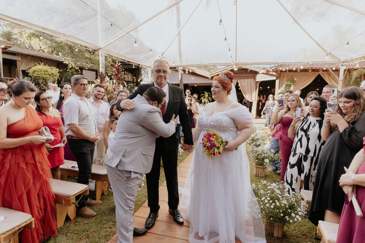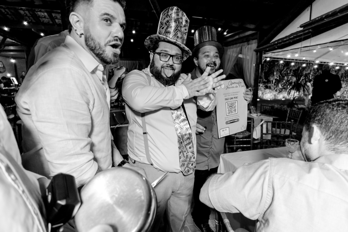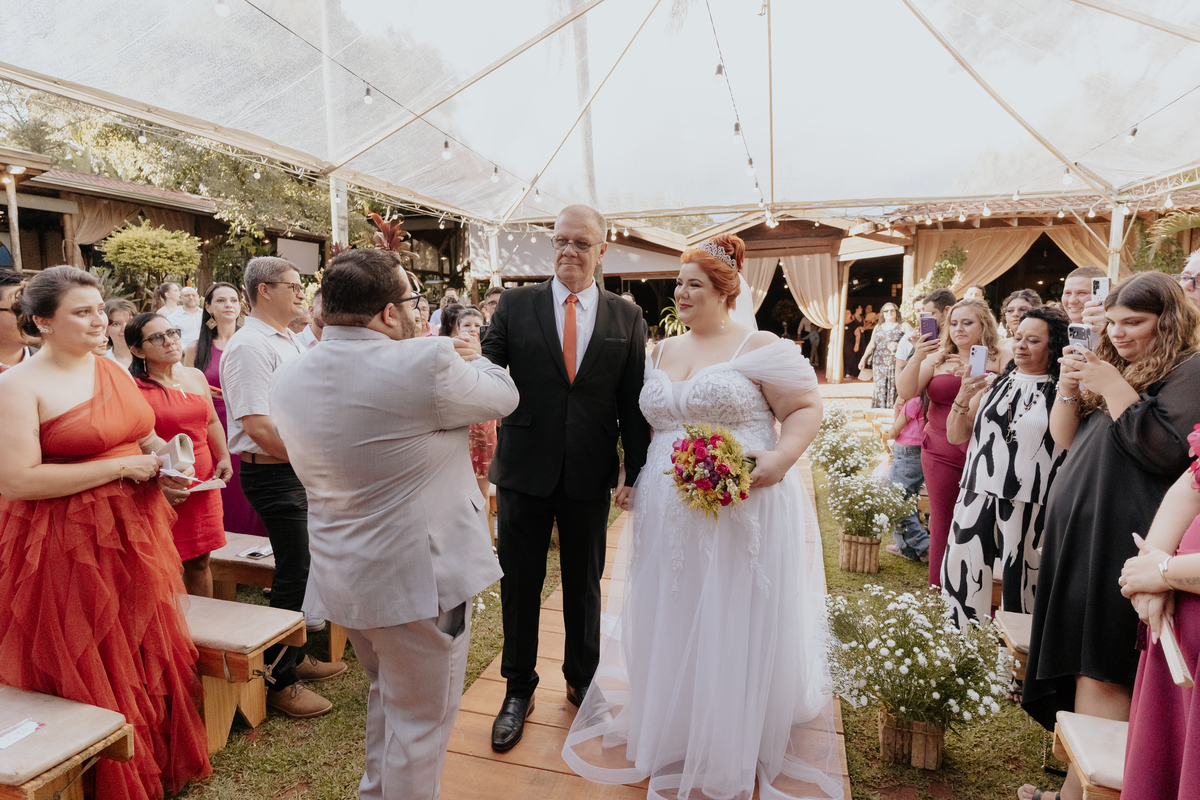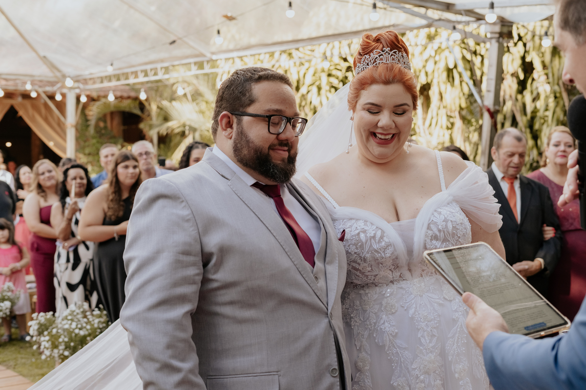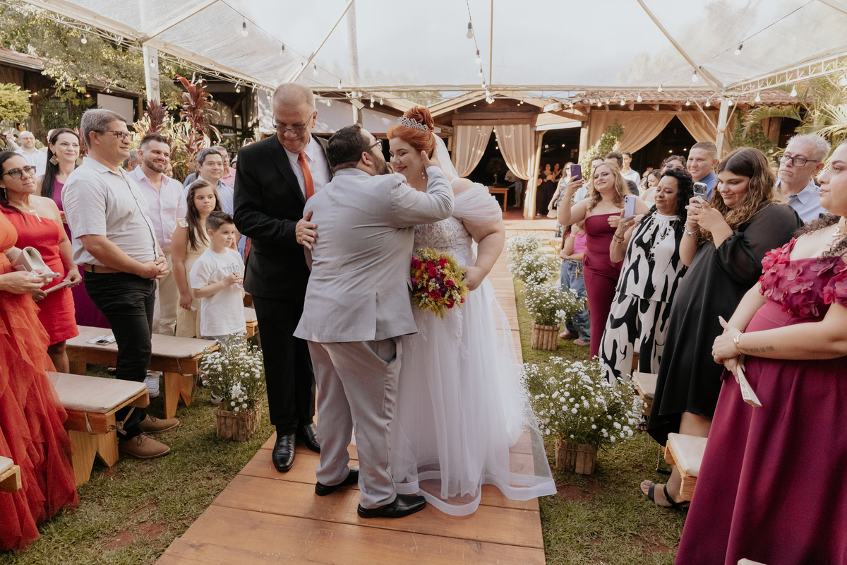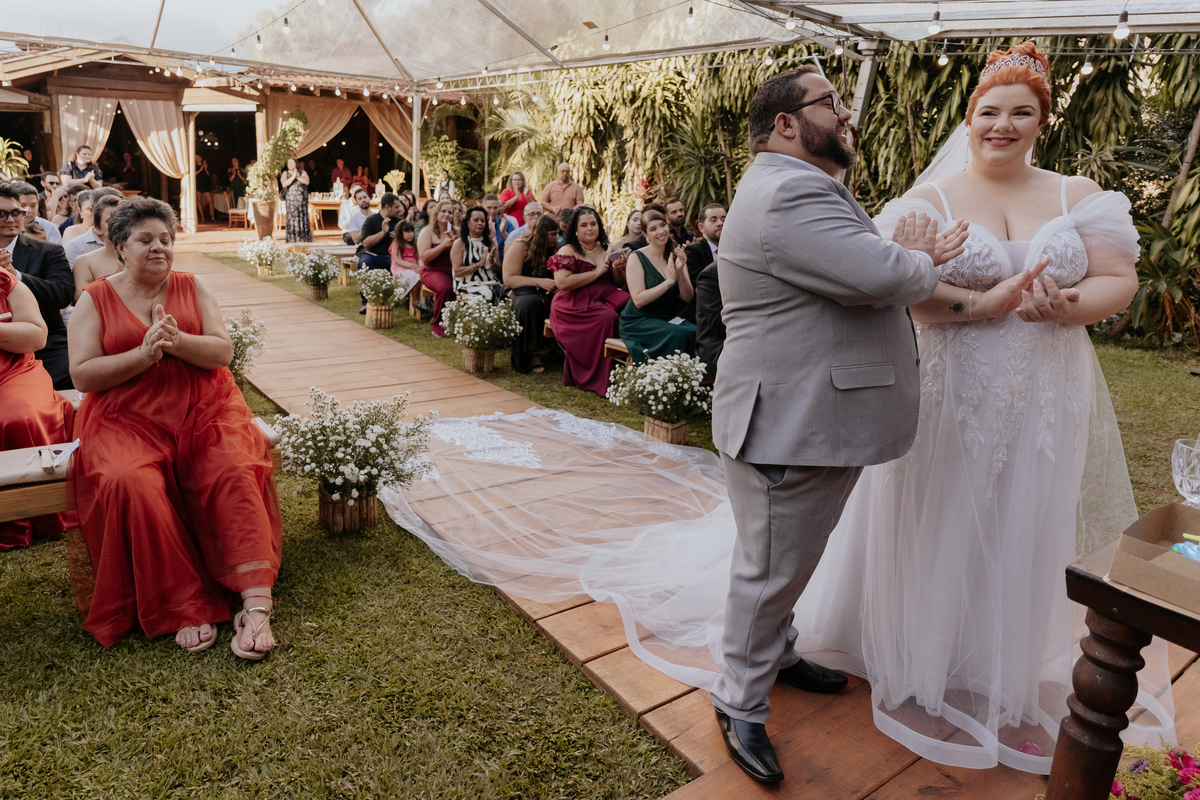 Teve making of cheio de expectativa, noiva encantada com o lugar, noivo com sorriso fácil (daqueles que entregam o coração antes mesmo da cerimônia começar ), e uma festa onde todo mundo viveu mais do que posou.