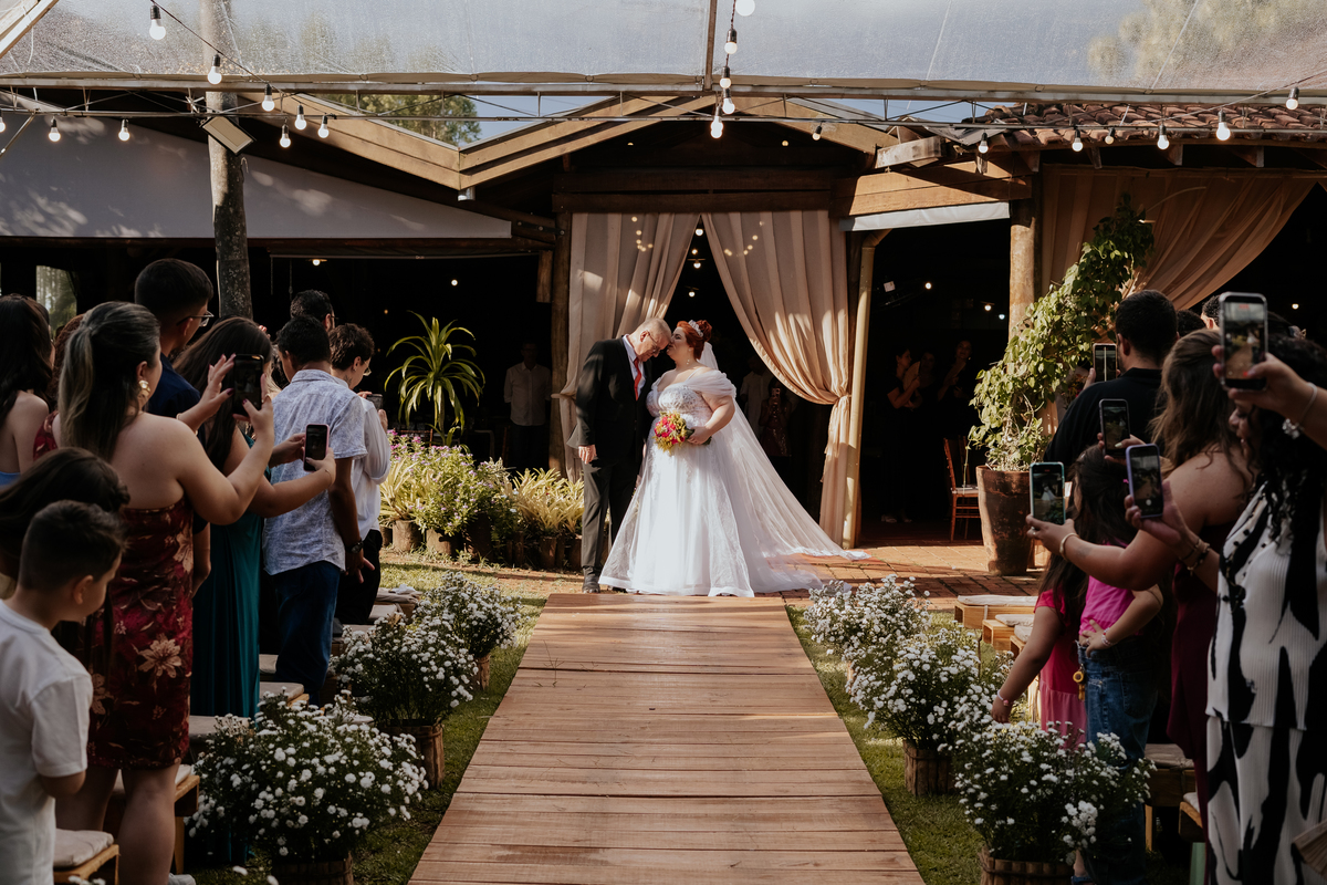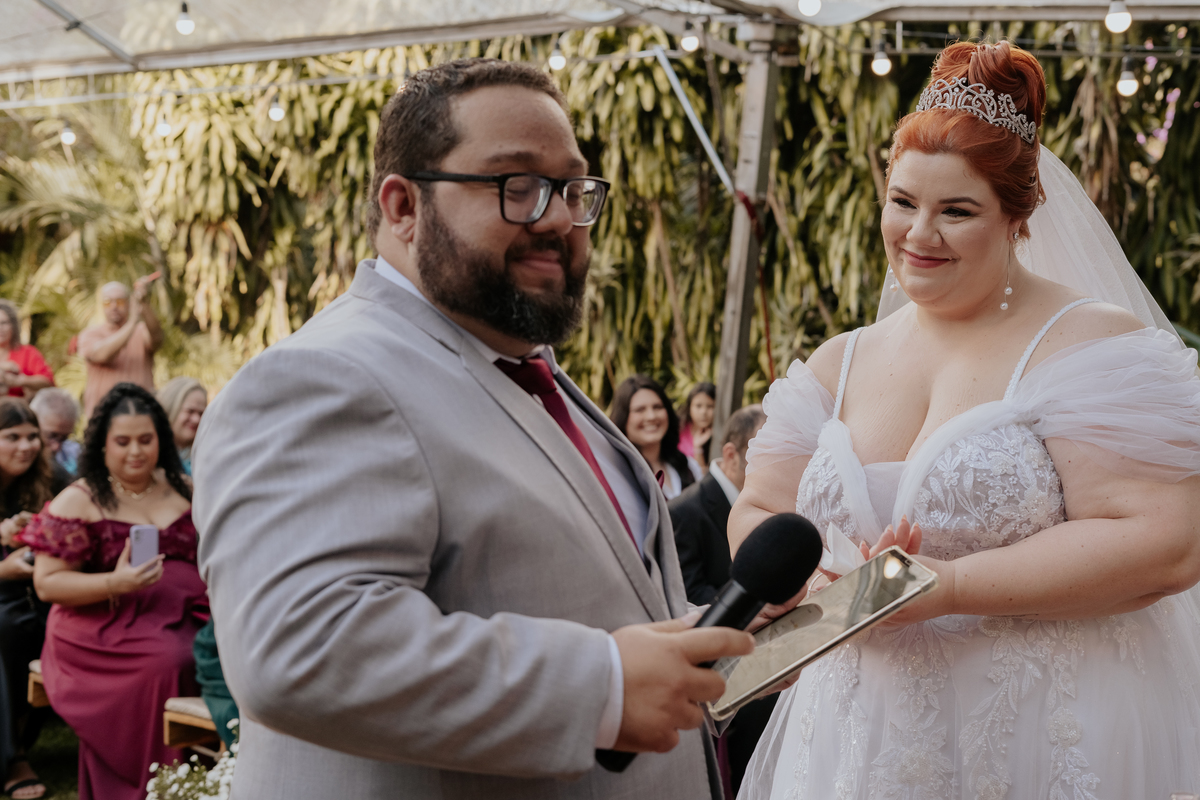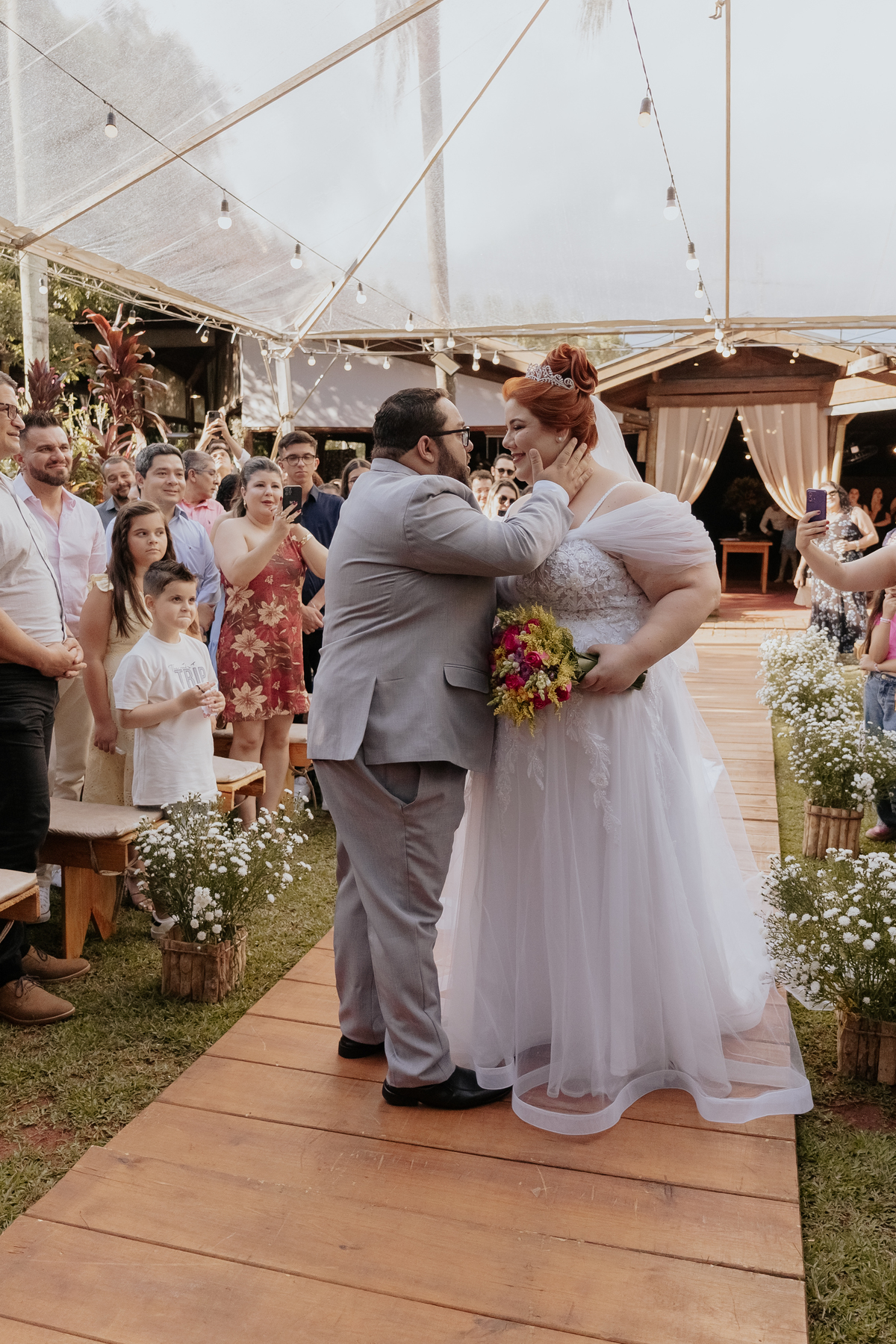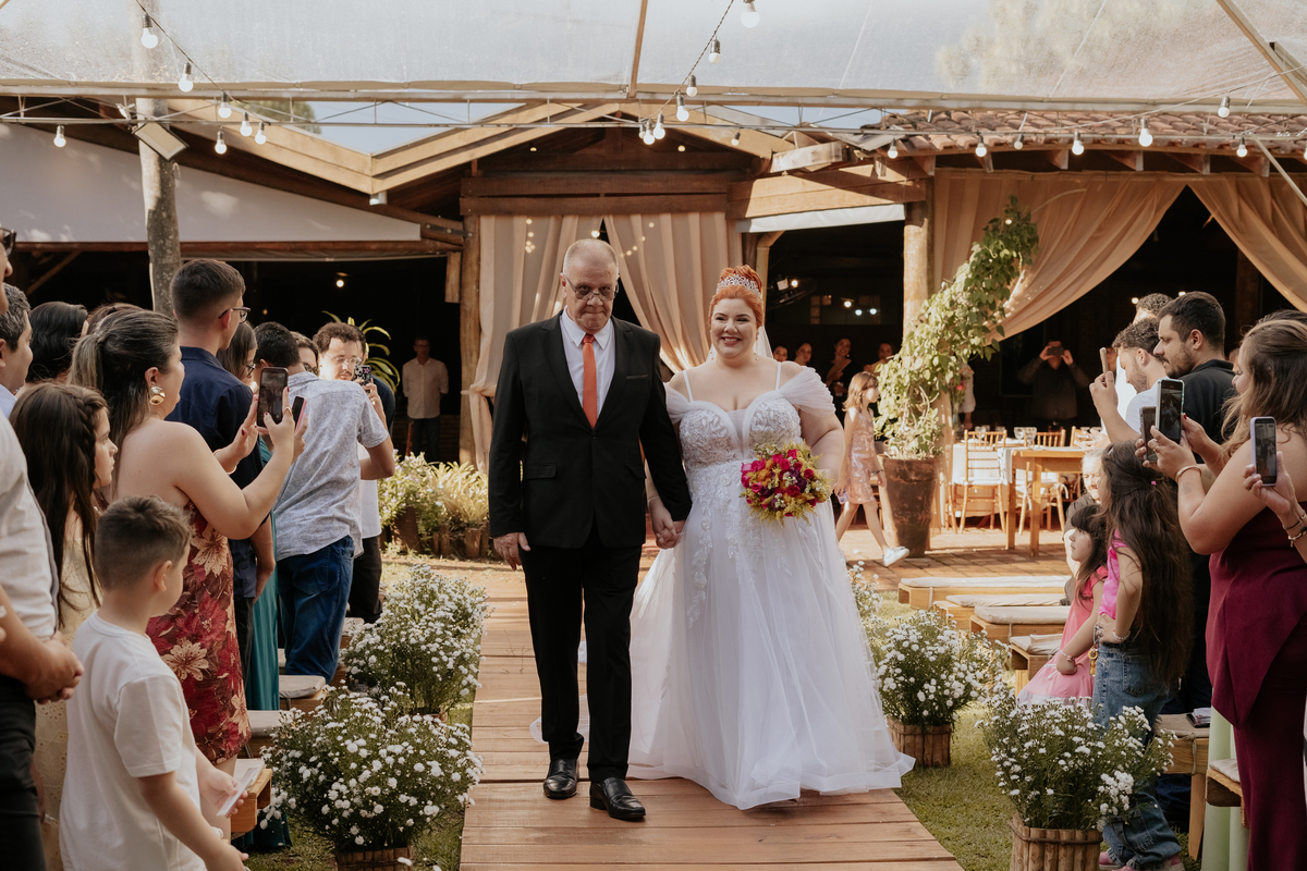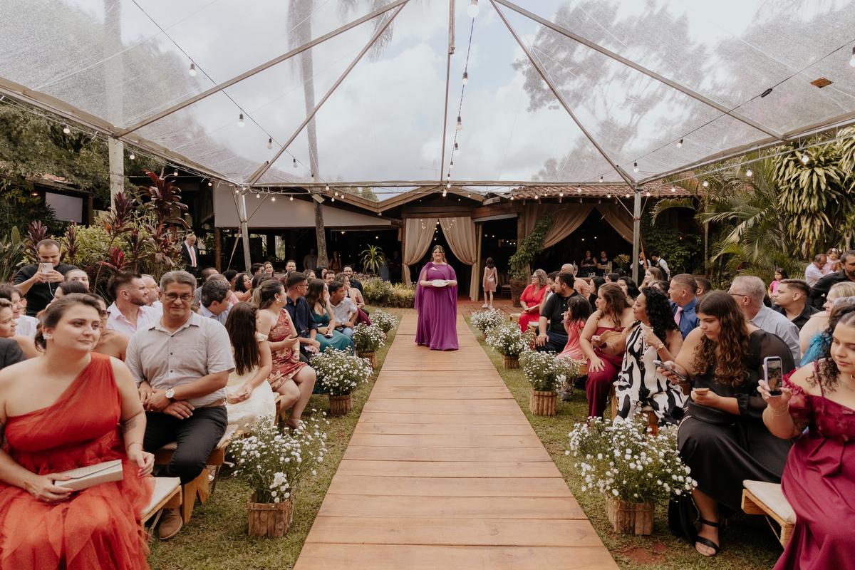 Teve making of cheio de expectativa, noiva encantada com o lugar, noivo com sorriso fácil (daqueles que entregam o coração antes mesmo da cerimônia começar ), e uma festa onde todo mundo viveu mais do que posou.