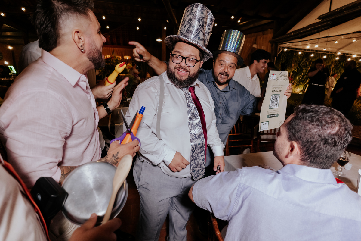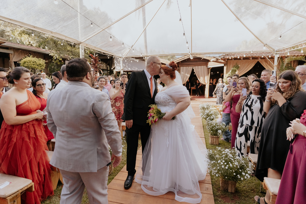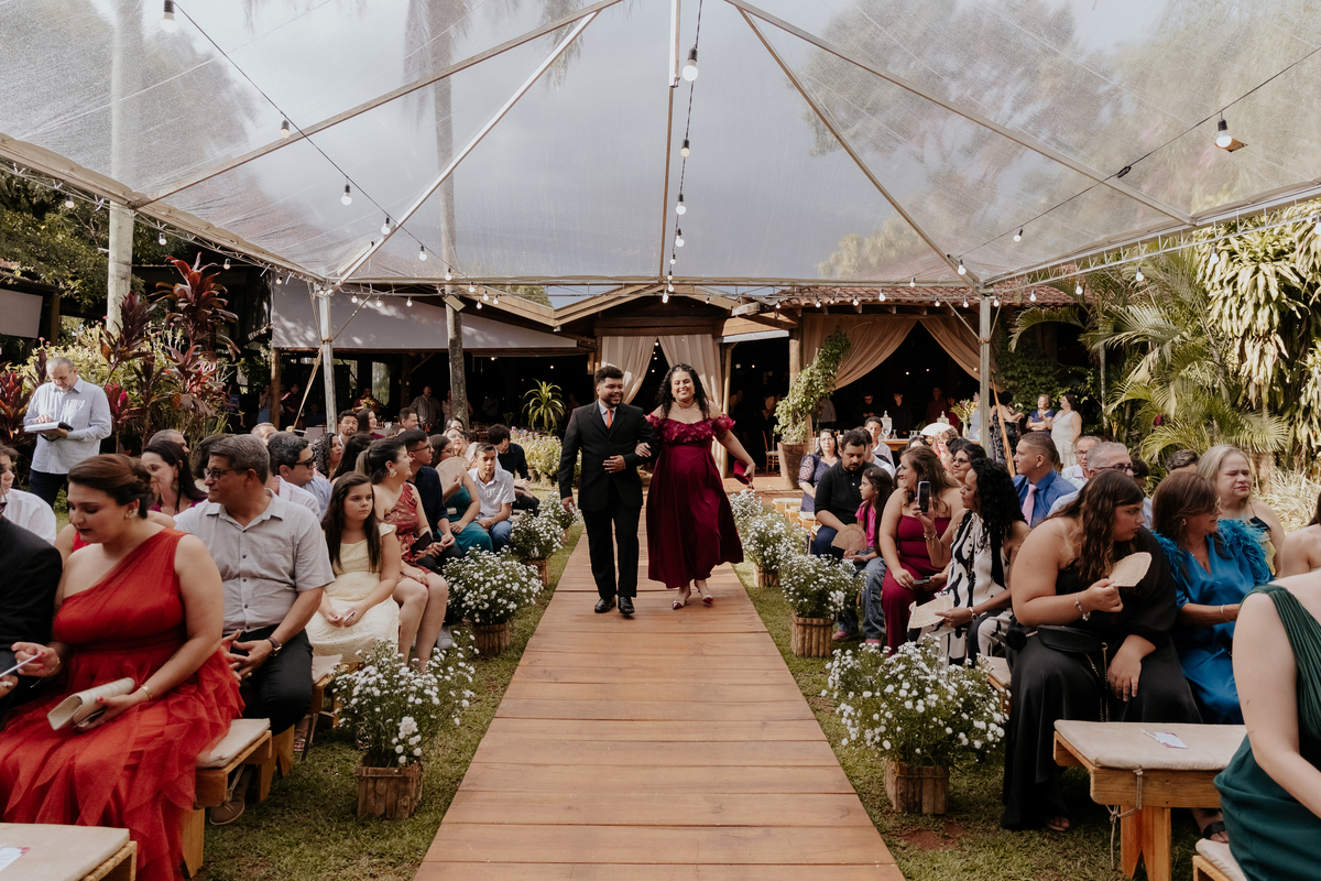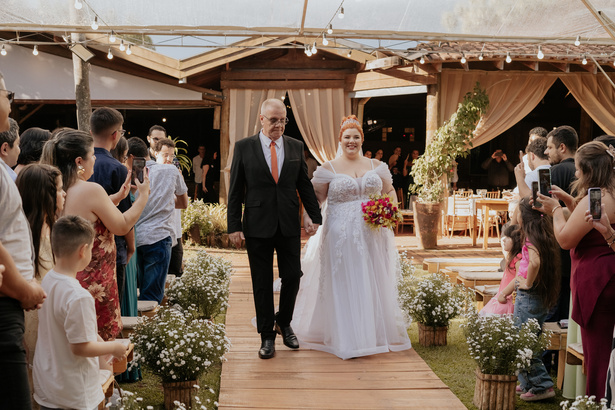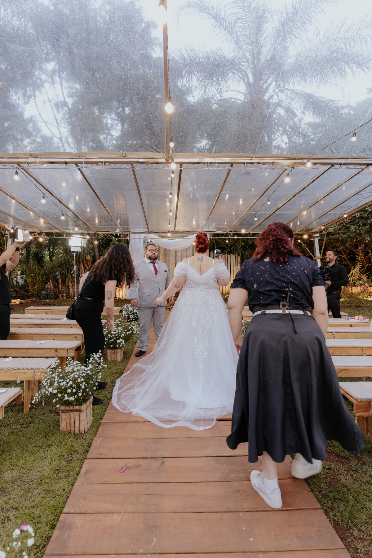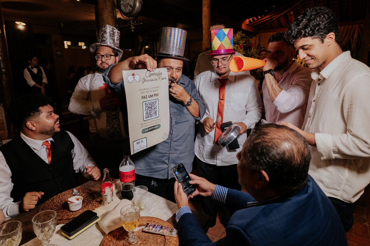 Teve making of cheio de expectativa, noiva encantada com o lugar, noivo com sorriso fácil (daqueles que entregam o coração antes mesmo da cerimônia começar ), e uma festa onde todo mundo viveu mais do que posou.