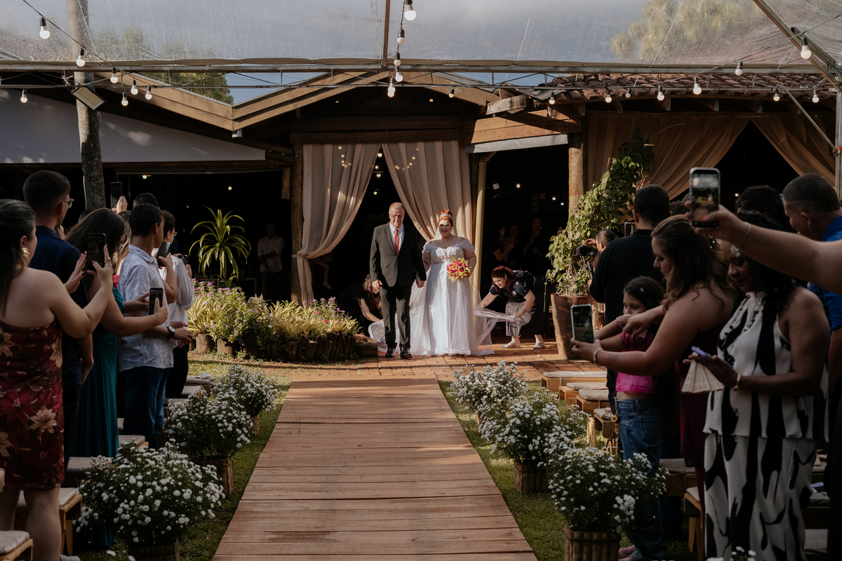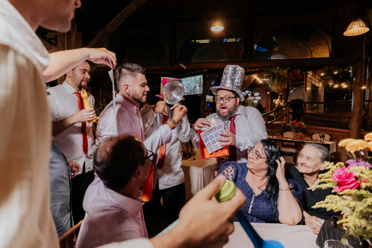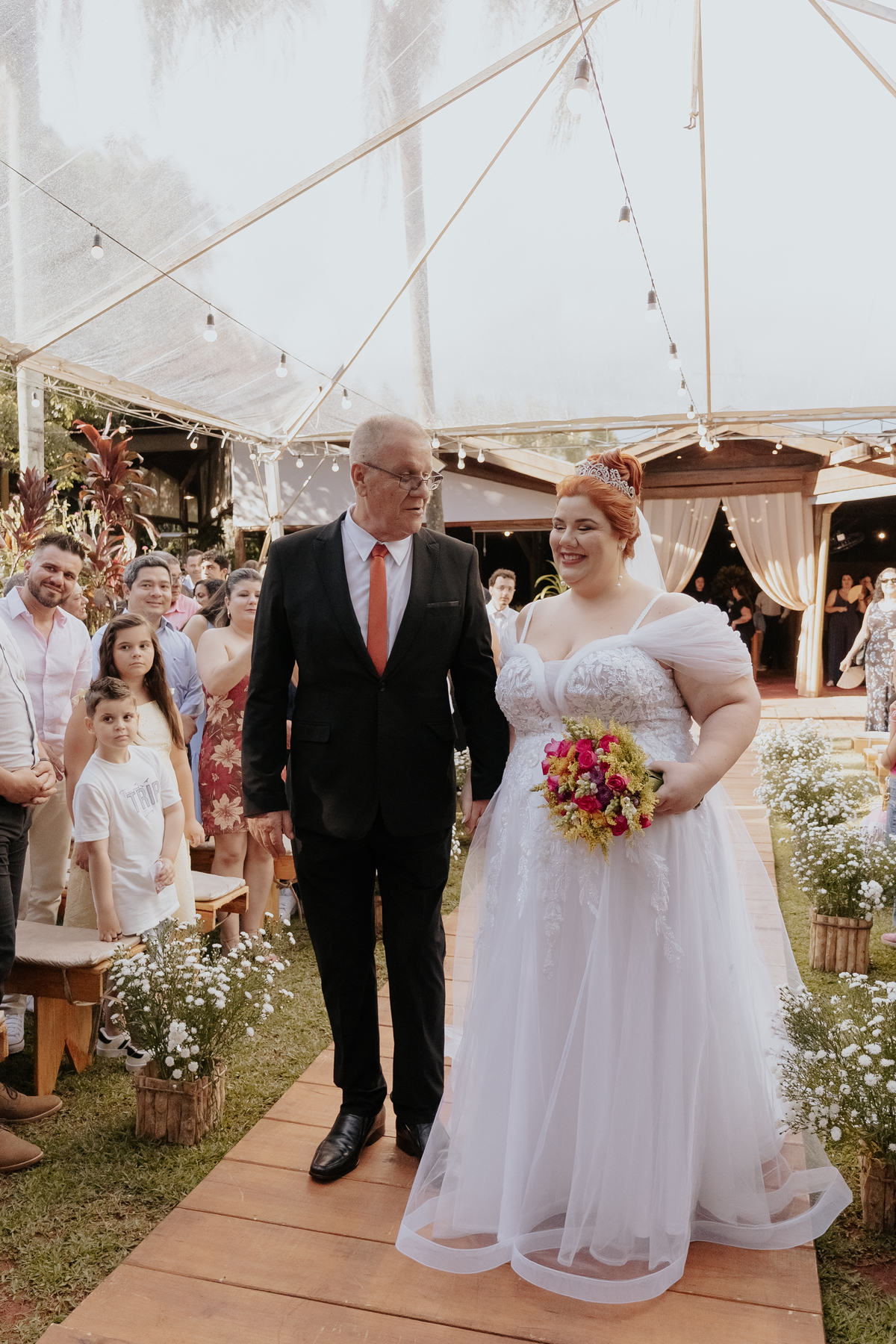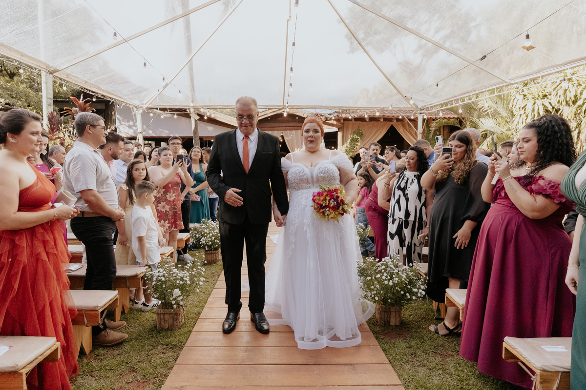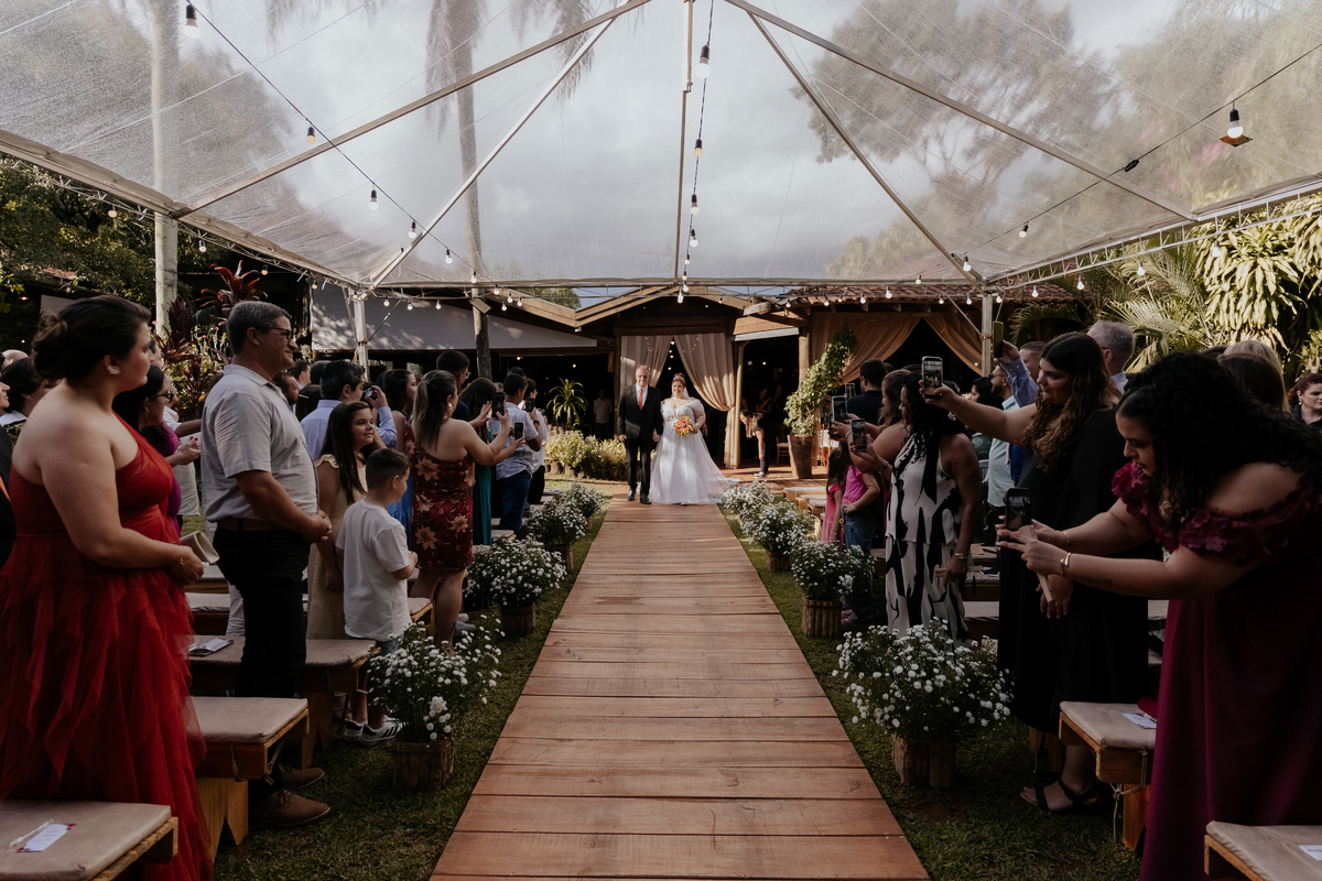 Teve making of cheio de expectativa, noiva encantada com o lugar, noivo com sorriso fácil (daqueles que entregam o coração antes mesmo da cerimônia começar ), e uma festa onde todo mundo viveu mais do que posou.