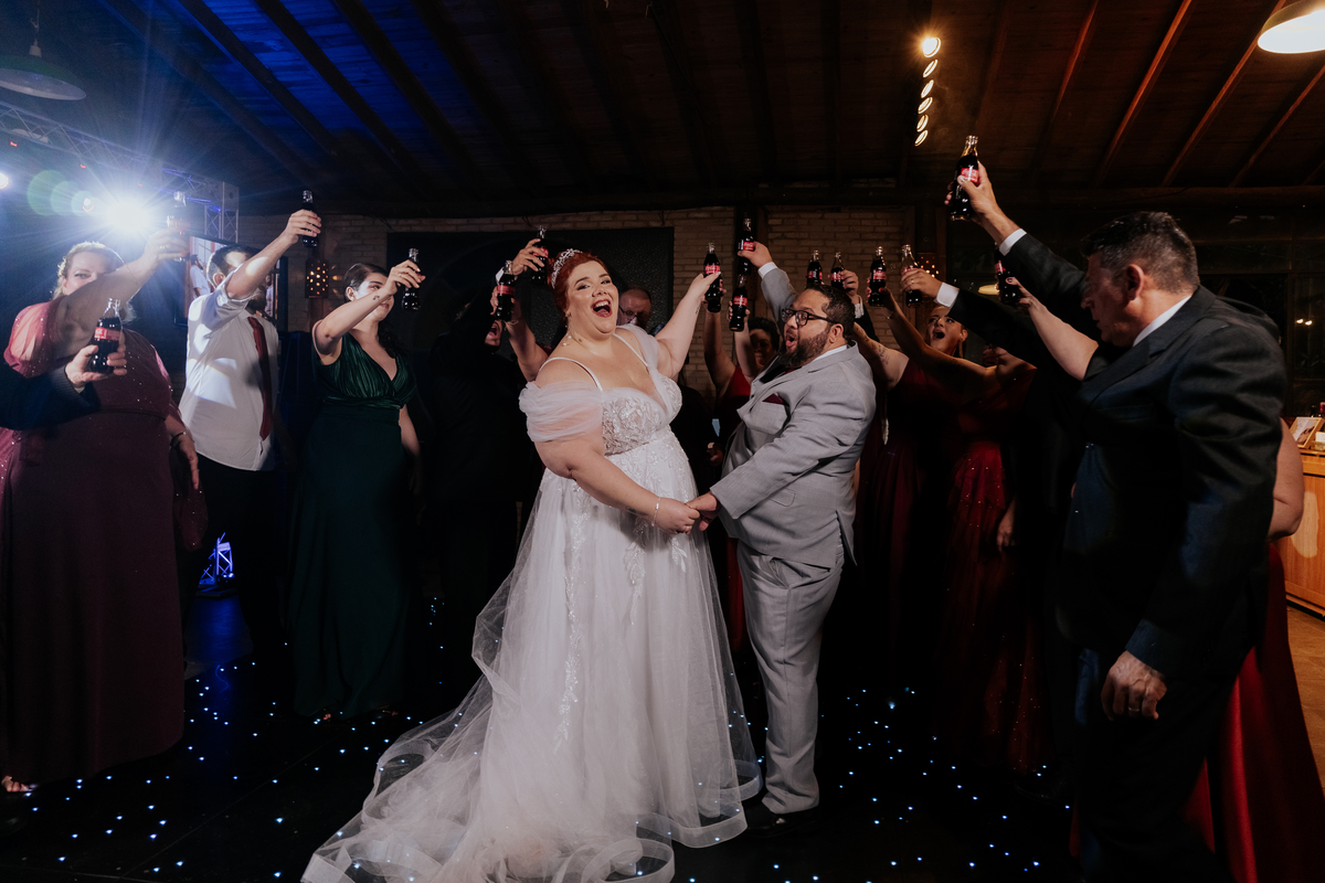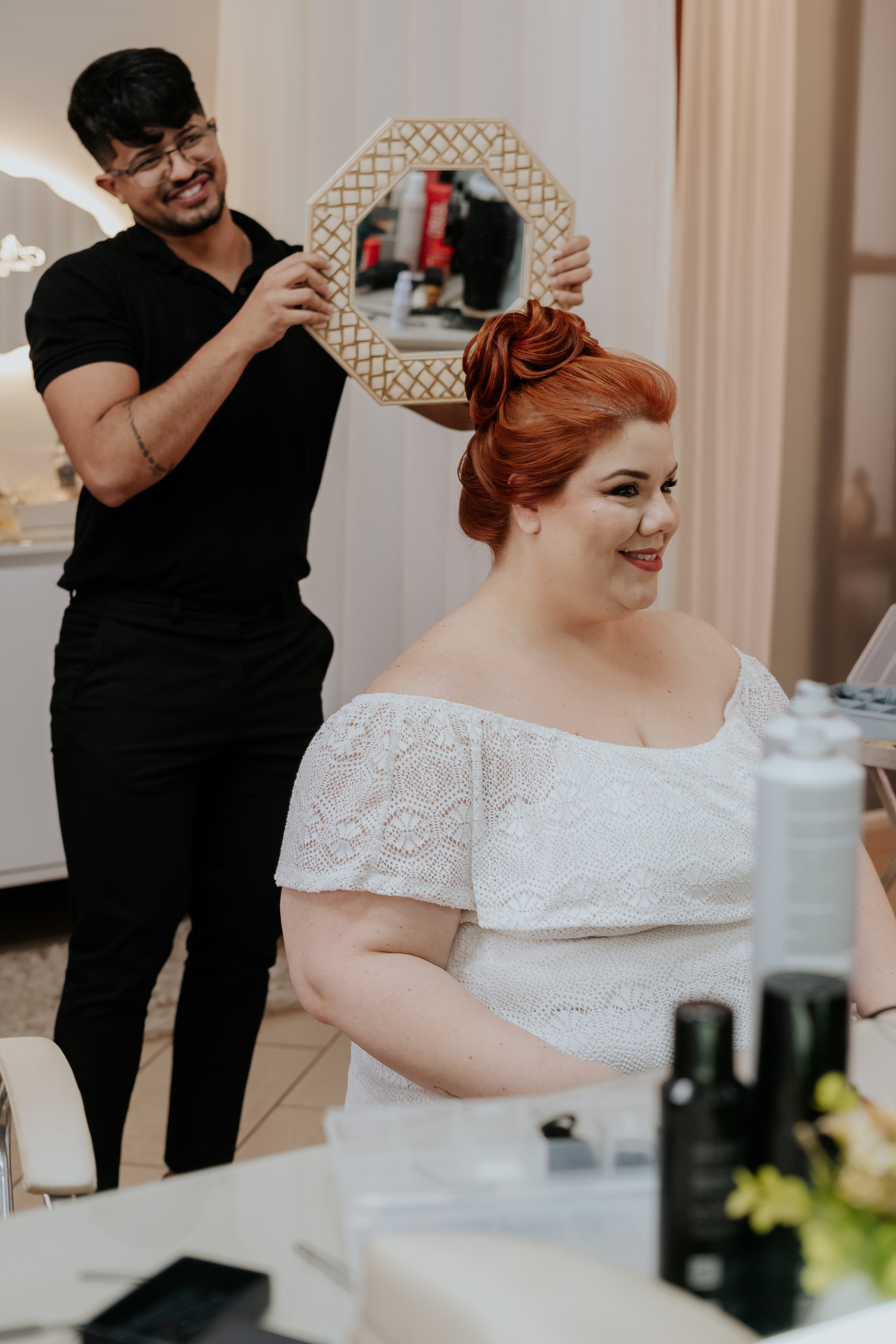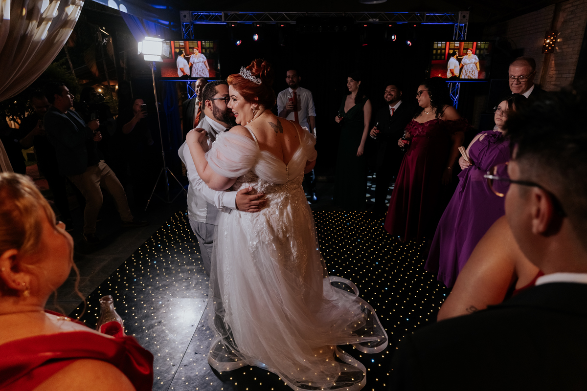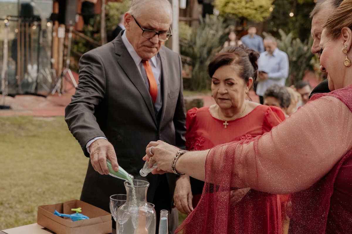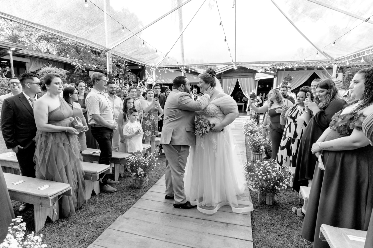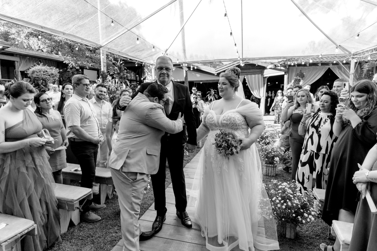Teve making of cheio de expectativa, noiva encantada com o lugar, noivo com sorriso fácil (daqueles que entregam o coração antes mesmo da cerimônia começar ), e uma festa onde todo mundo viveu mais do que posou.